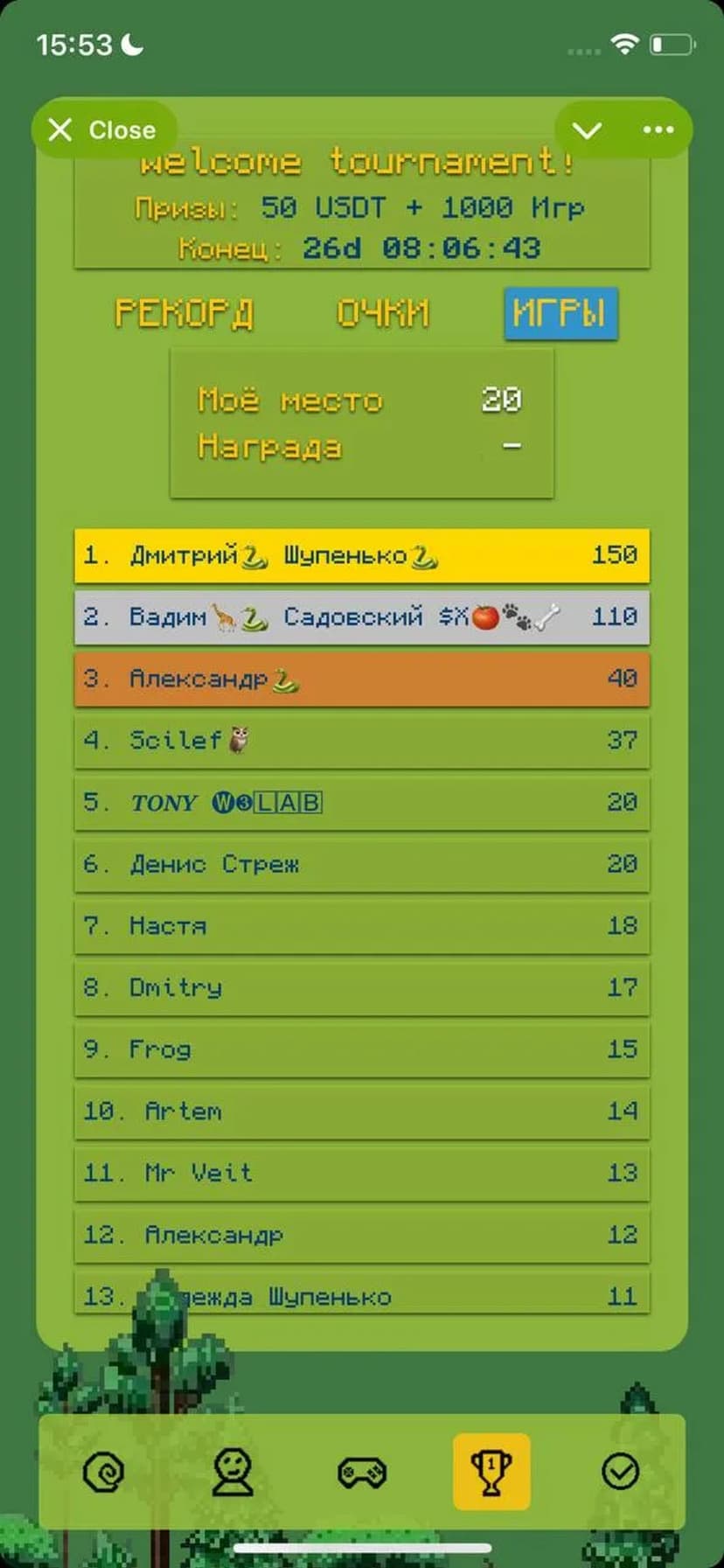 Slimak сочетает GameFi-механику с турнирами и реальными наградами. Игроки запускают простые игры, набирают очки, выполняют задания и приглашают друзей, чтобы получать дополнительные попытки и бонусы.