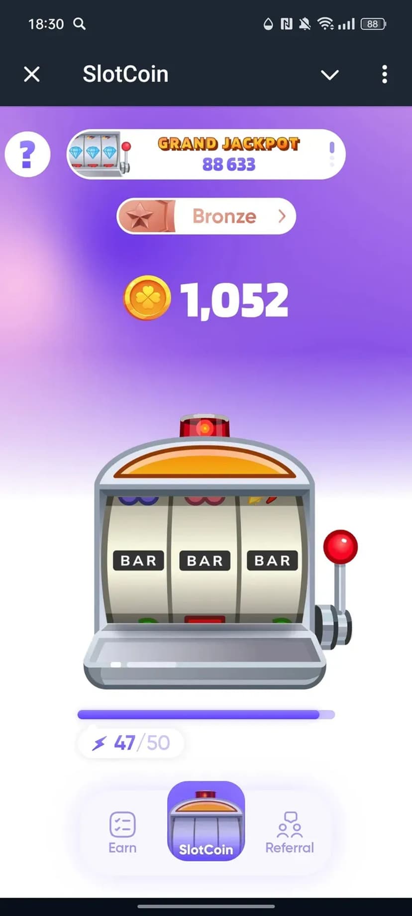 SlotCoin — игровой слот прямо в мессенджере: вращайте барабаны, получайте фишки и приглашайте друзей для дополнительных монет.