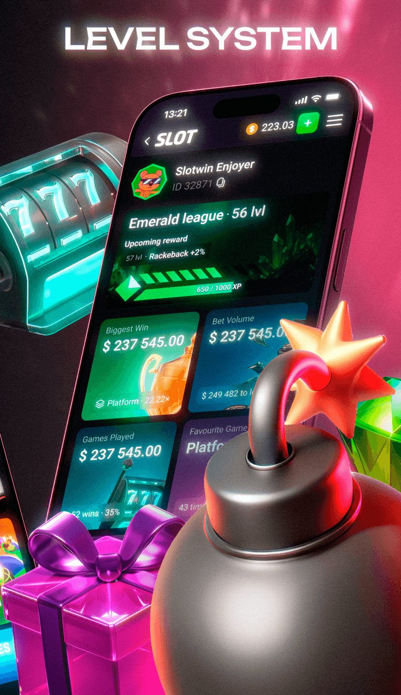 - Система уровней и вознаграждений: повышение ранга, мгновенный рейкбек и регулярные бонусы (ежедневные, еженедельные, ежемесячные).