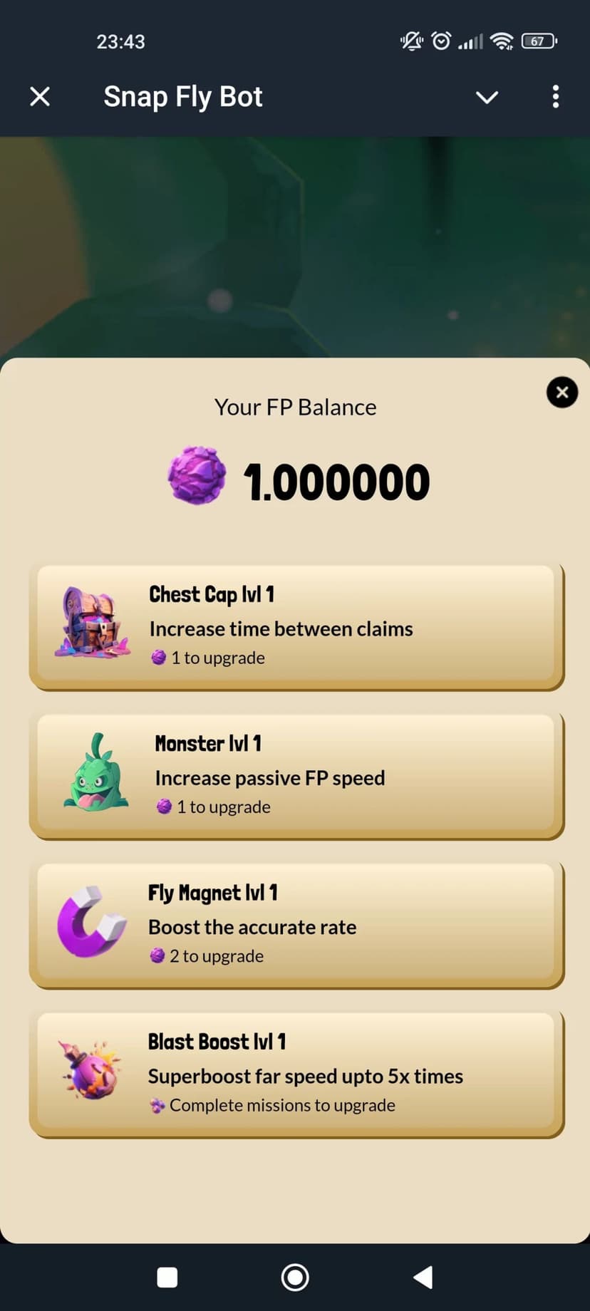Fly Points начисляются за ежедневные входы, базовые квесты и клики. Накопленные $FP можно тратить на покупки и улучшения персонажей и снаряжения, повышая эффективность и получаемые вознаграждения.