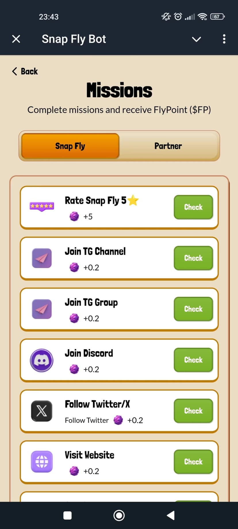 Snap Fly — мини-игра с Web3-интеграцией, в которой игроки получают внутриигровую валюту Fly Points ($FP) за выполнение игровых задач.