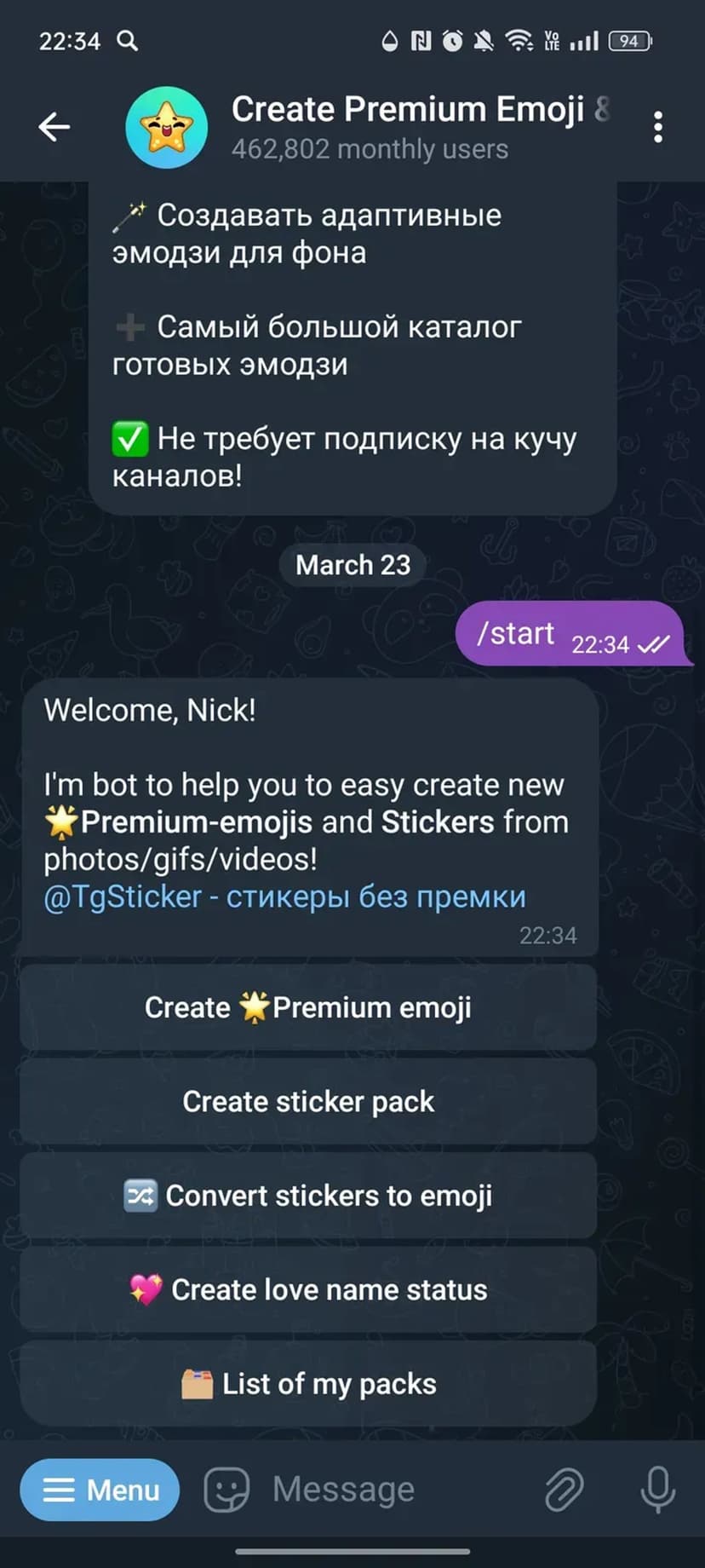 - Анимированные GIF и видео автоматически конвертируются в анимированные стикеры.