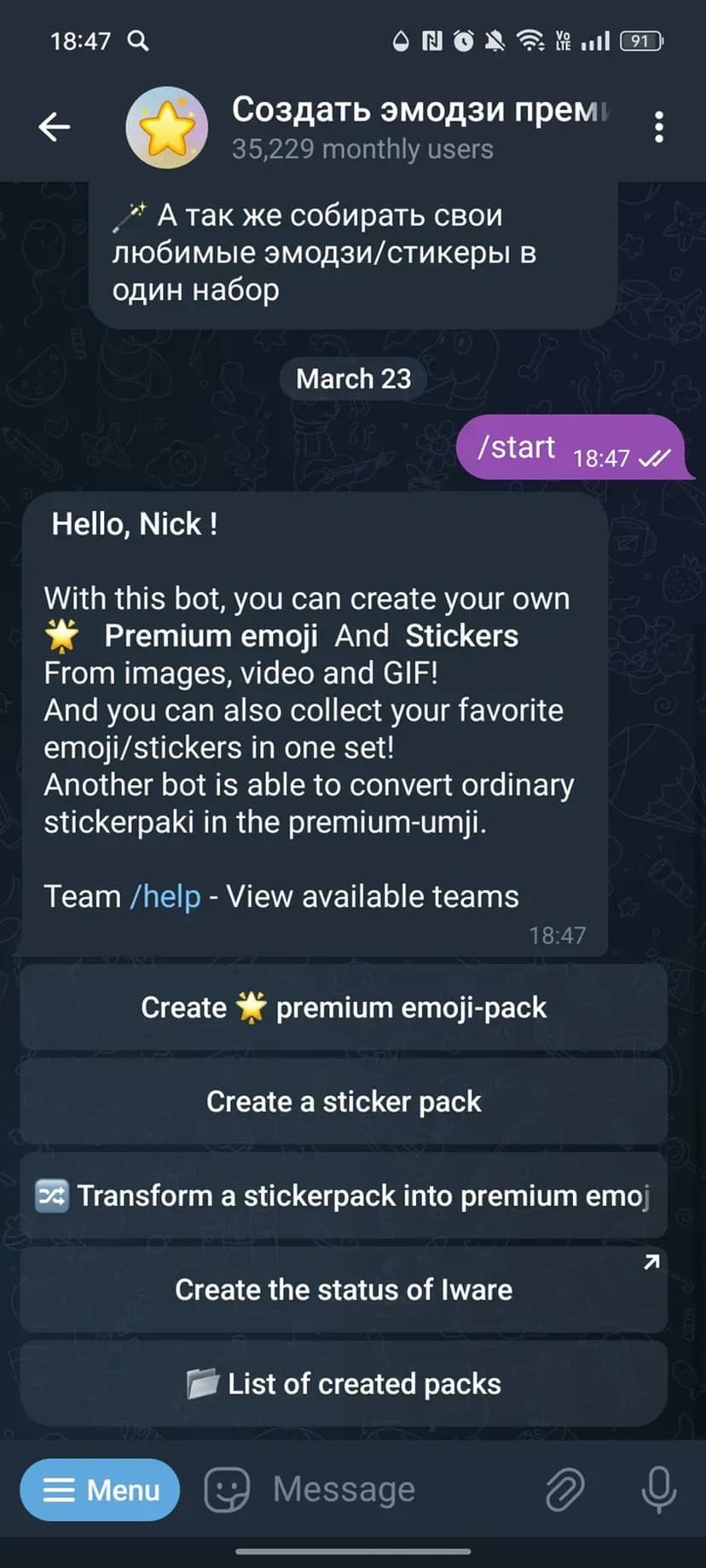 - Конвертация обычных стикерпаков в премиум‑эмодзи для расширенной кастомизации.
