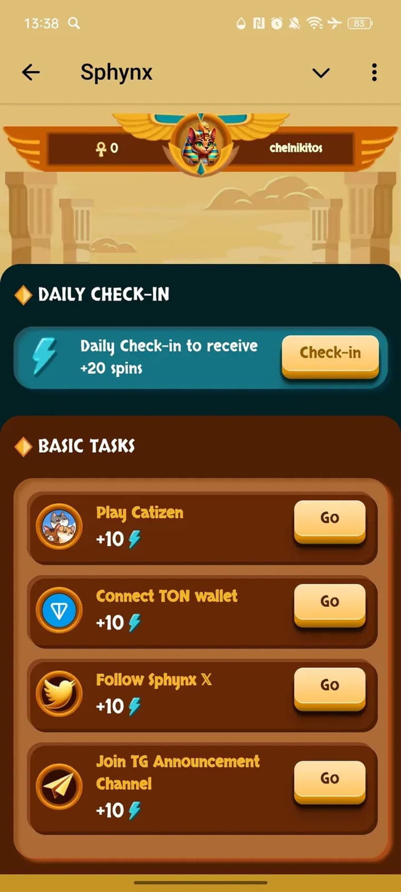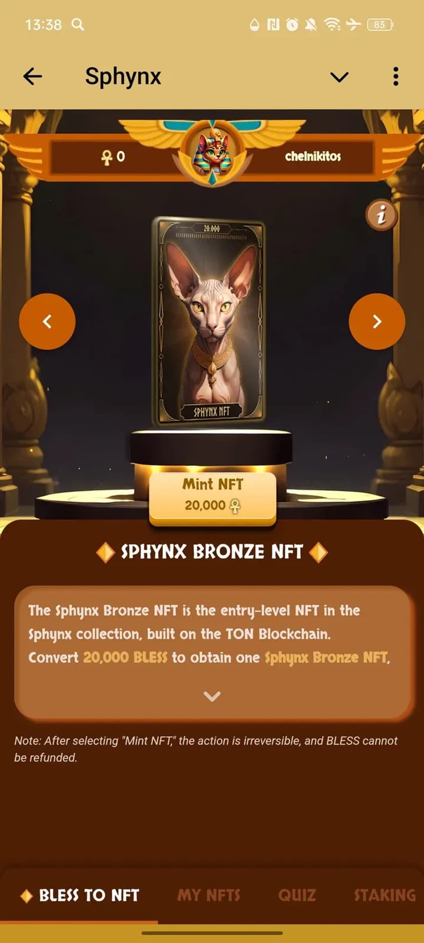 Sphynx — Web3 мини‑приложение в Telegram, объединяющее игровые механики и криптоактивности в экосистеме TON. Основная цель — накопление токенов BLESS для участия в будущих аирдропах.