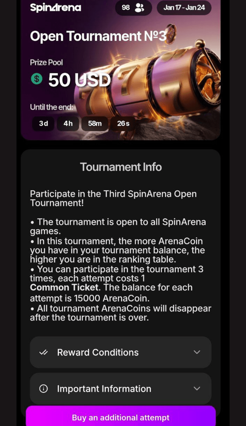 *Нажимая "Открыть в Telegram", вы перейдете к приложению SpinArena в мессенджере Telegram