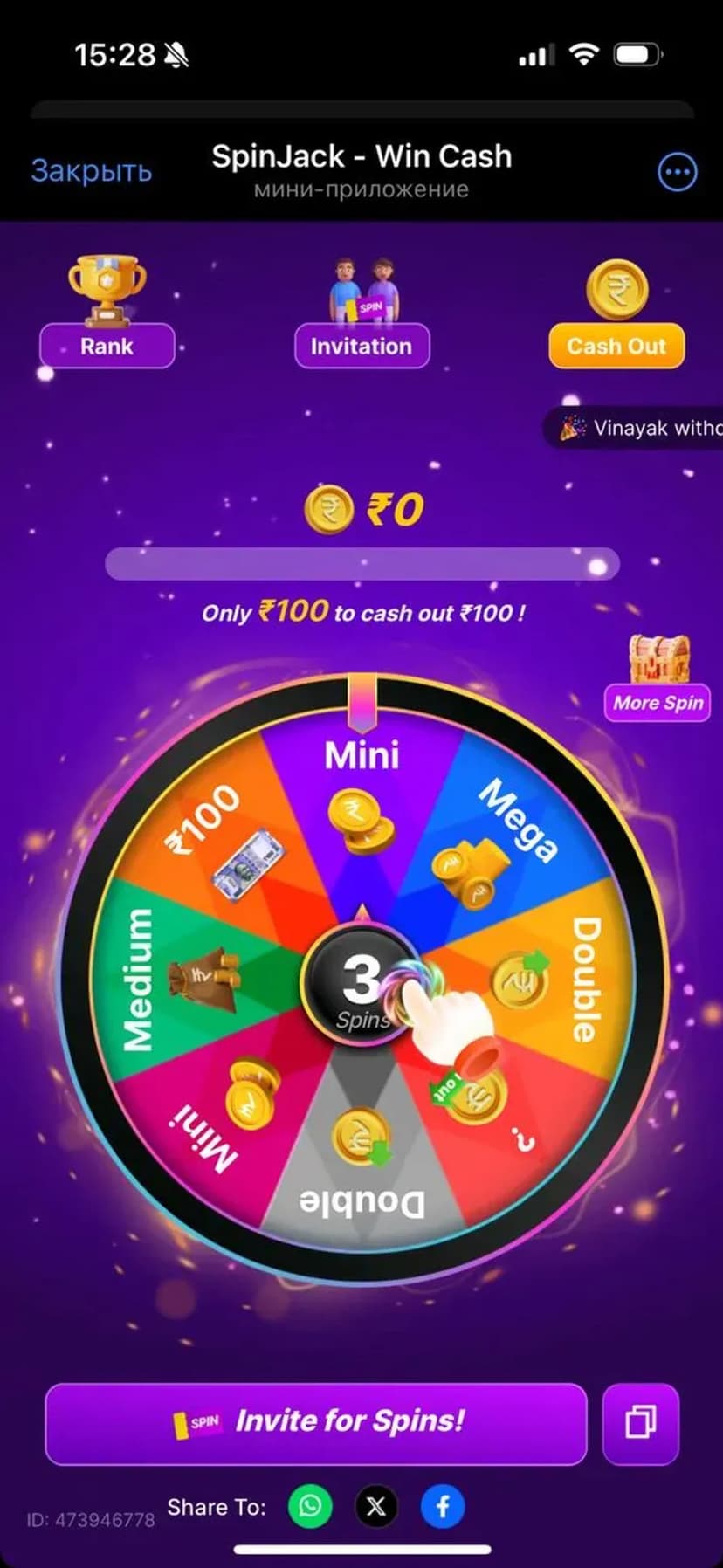SpinJack — Win Cash предлагает быстрые игровые сессии с механикой вращения барабана: результат отображается мгновенно, а выигрыши выдаются в виде реальных денежных призов.