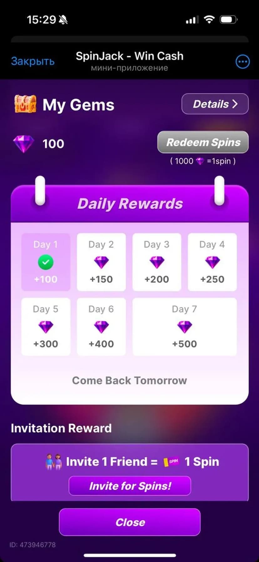 *Нажимая "Открыть в Telegram", вы перейдете к приложению SpinJack - Win Cash в мессенджере Telegram