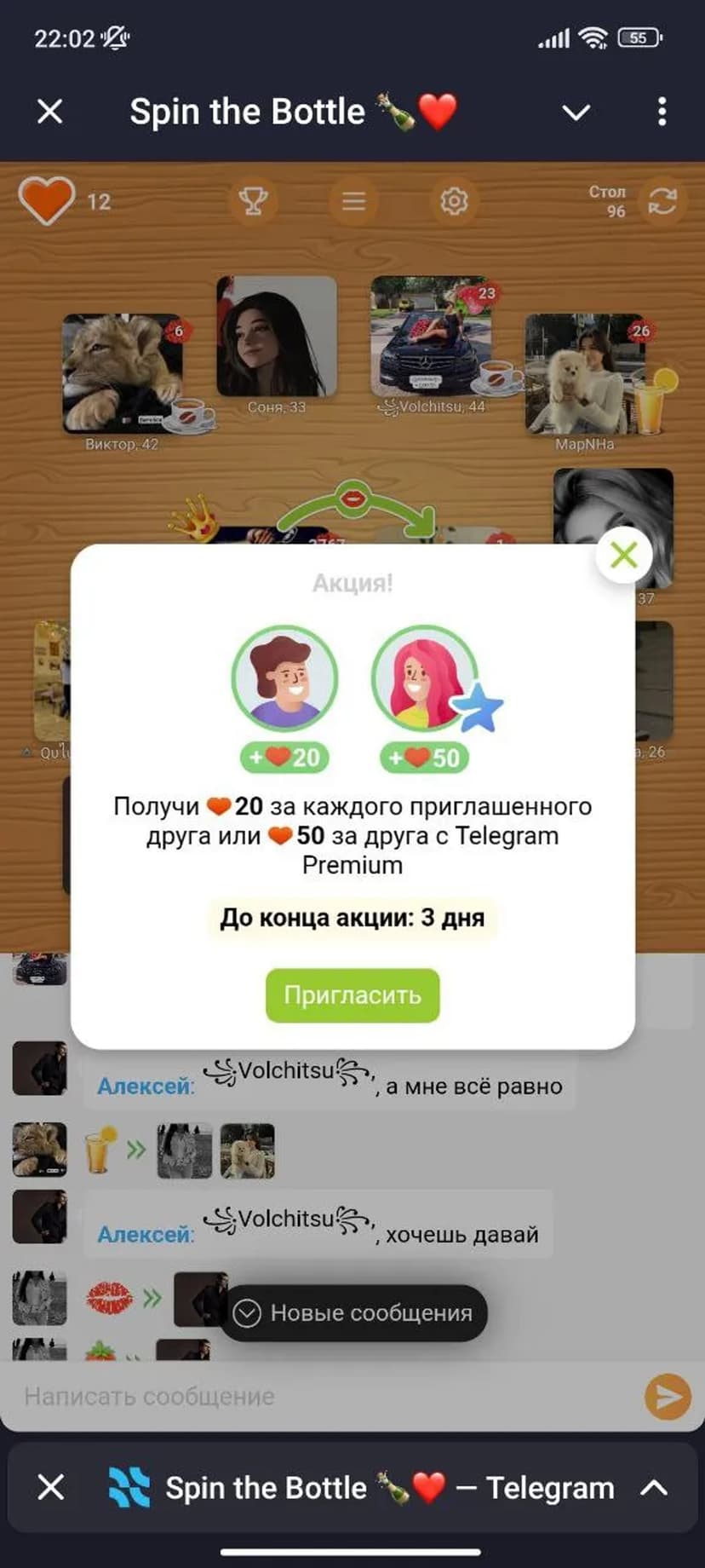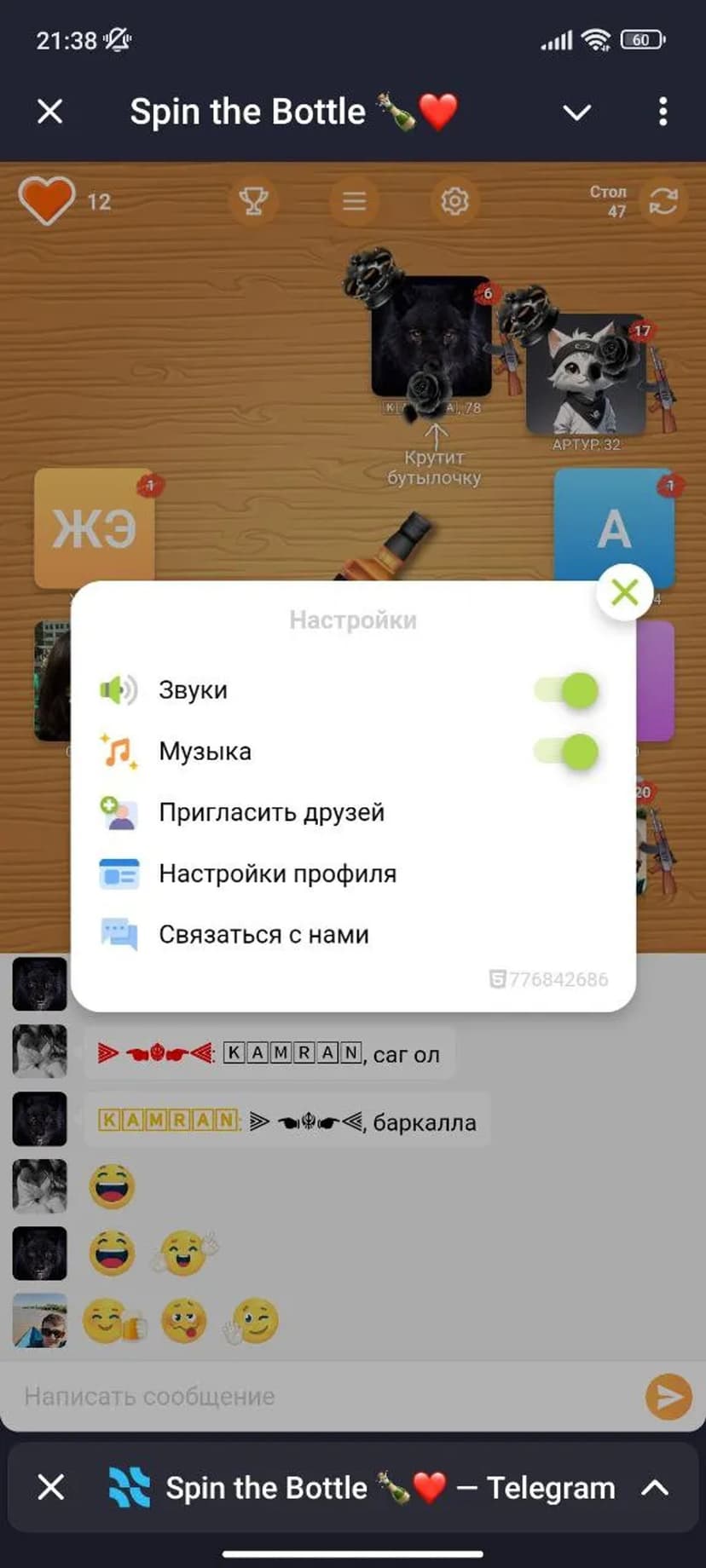 *Нажимая "Открыть в Telegram", вы перейдете к приложению Spin the Bottle в мессенджере Telegram
