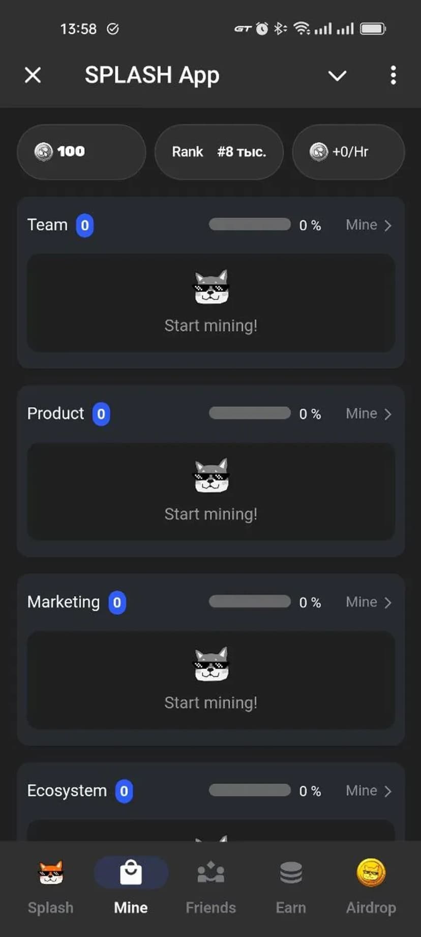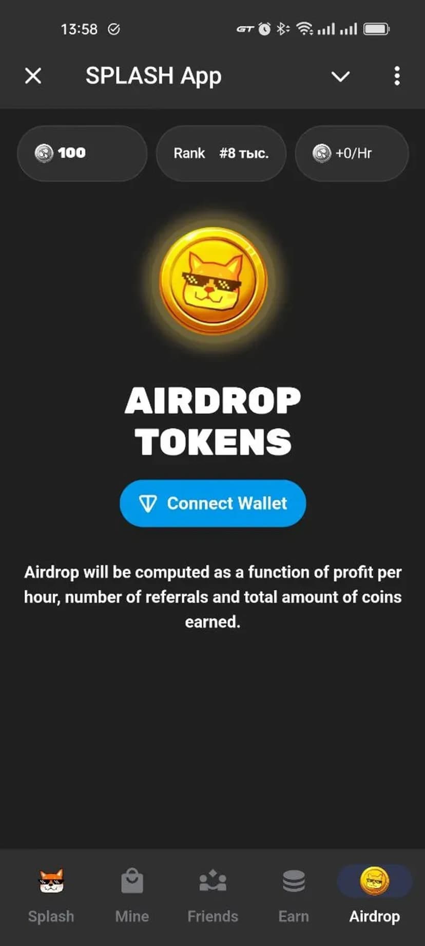 - Airdrop: накопленные монеты могут конвертироваться в SPLASH‑токены в рамках аирдропа.