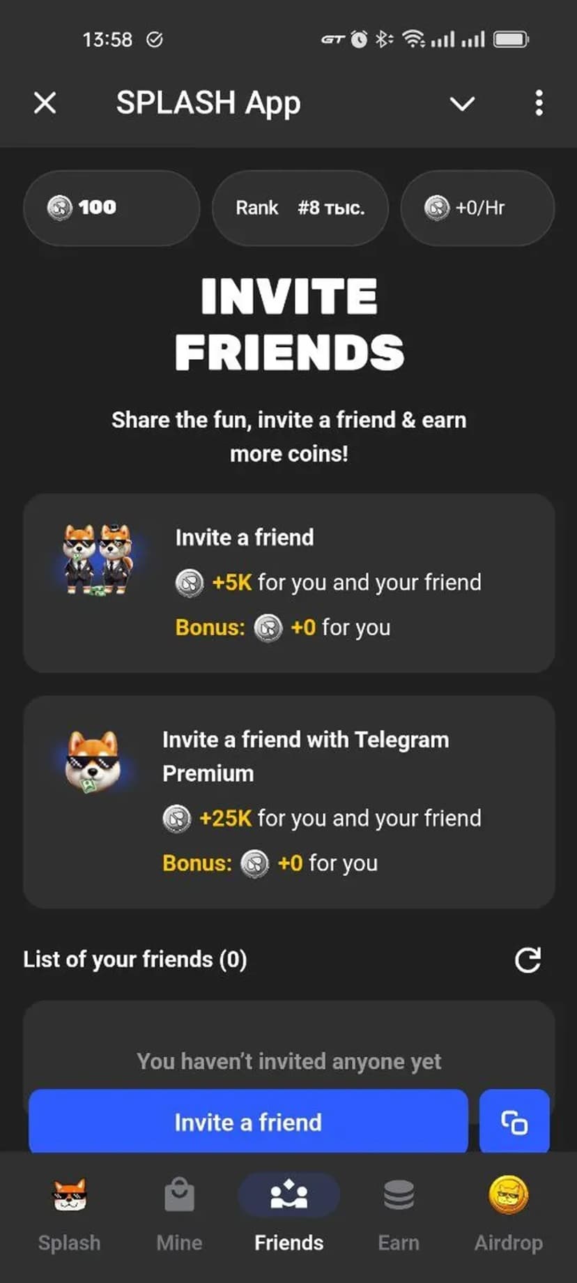 Геймифицированные квесты и рефералы для заработка монет и участия в airdrop SPLASH