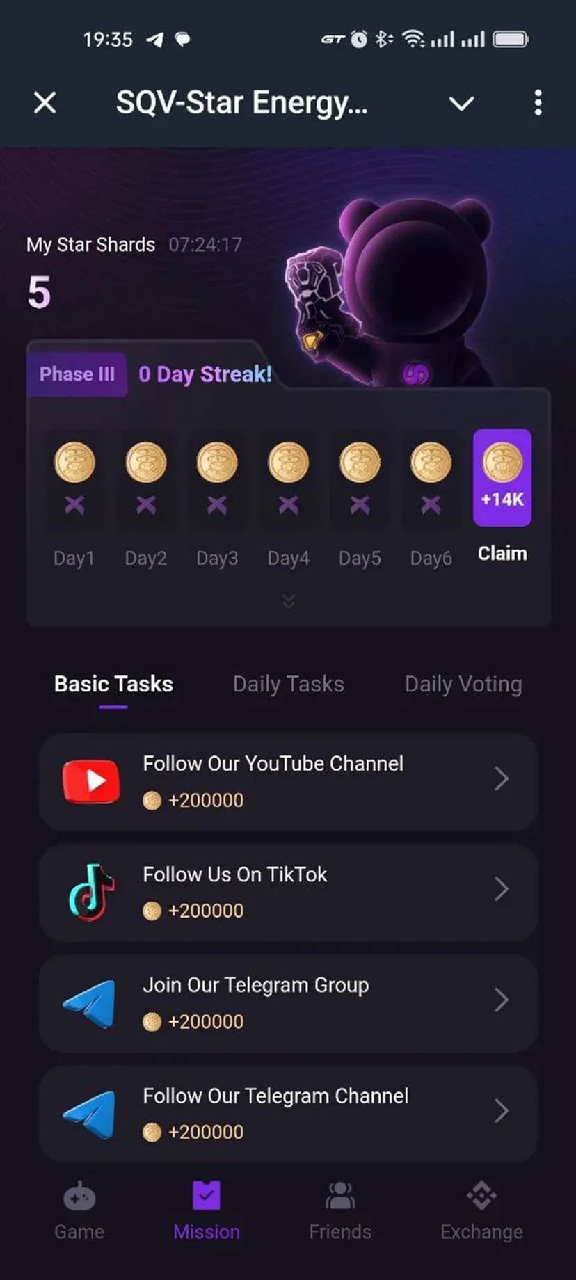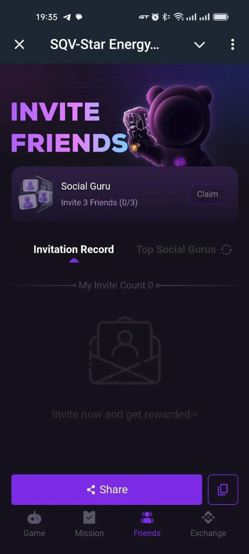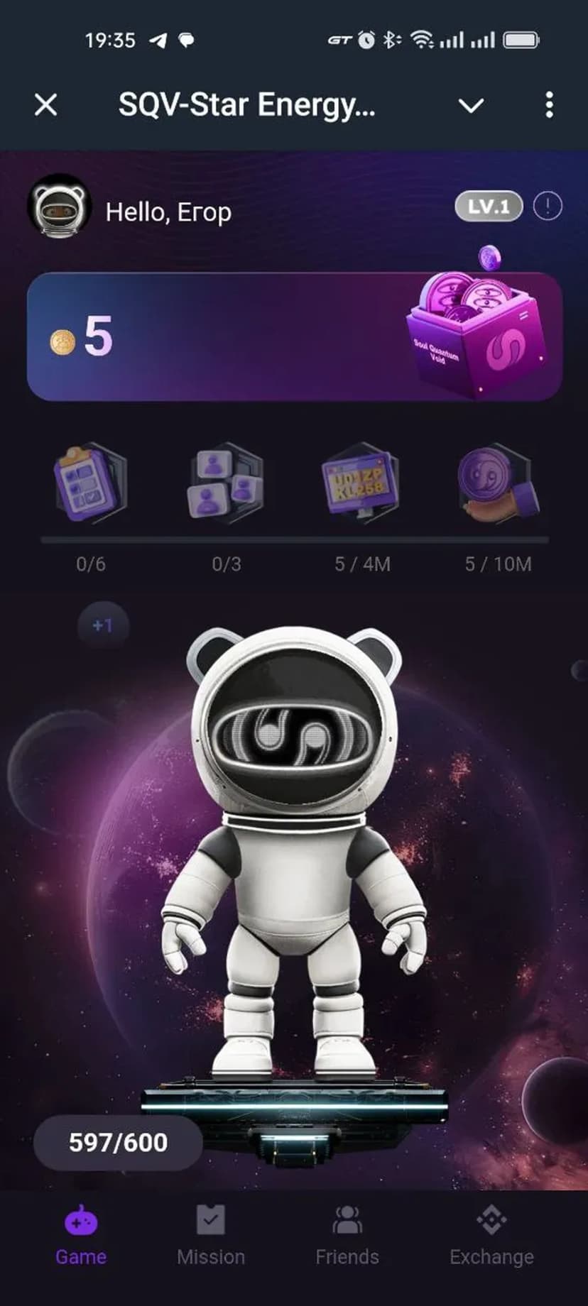 SQV-Star Energy Hunter — геймифицированная платформа для заработка криптовалютных аирдропов и BNB. Пользователи получают статус «Seeds of Origin», выполняют игровые задания и участвуют в многоуровневых реферальных схемах для получения вознаграждений.