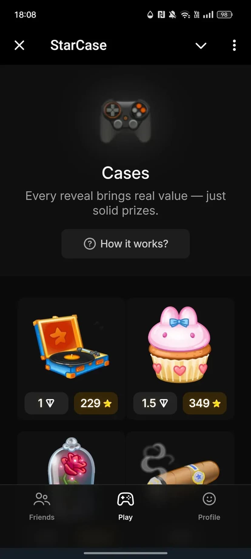 StarCase — сервис в Telegram для проведения кейсов, розыгрышей и мини-лотерей. Предназначен для взрослой аудитории (18+), желающей участвовать в быстрых азартных конкурсах внутри мессенджера без перехода на сторонние сайты.