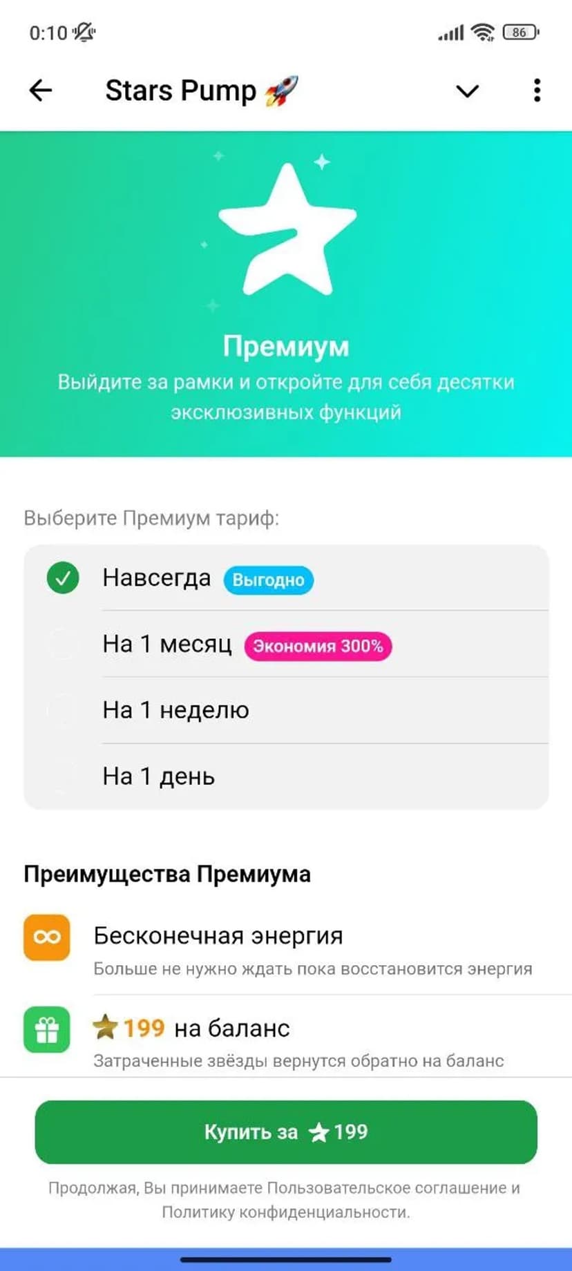 *Нажимая "Открыть в Telegram", вы перейдете к приложению Stars Pump в мессенджере Telegram