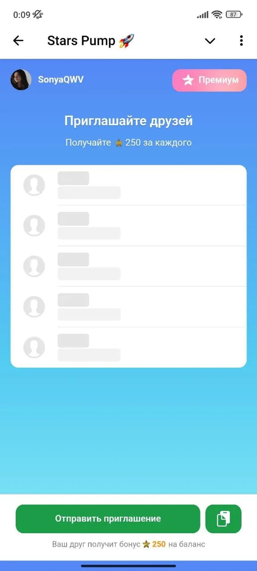 - Реферальная система: за каждого активированного приглашённого начисляется 20 Stars, верхнего лимита по рефералам нет.