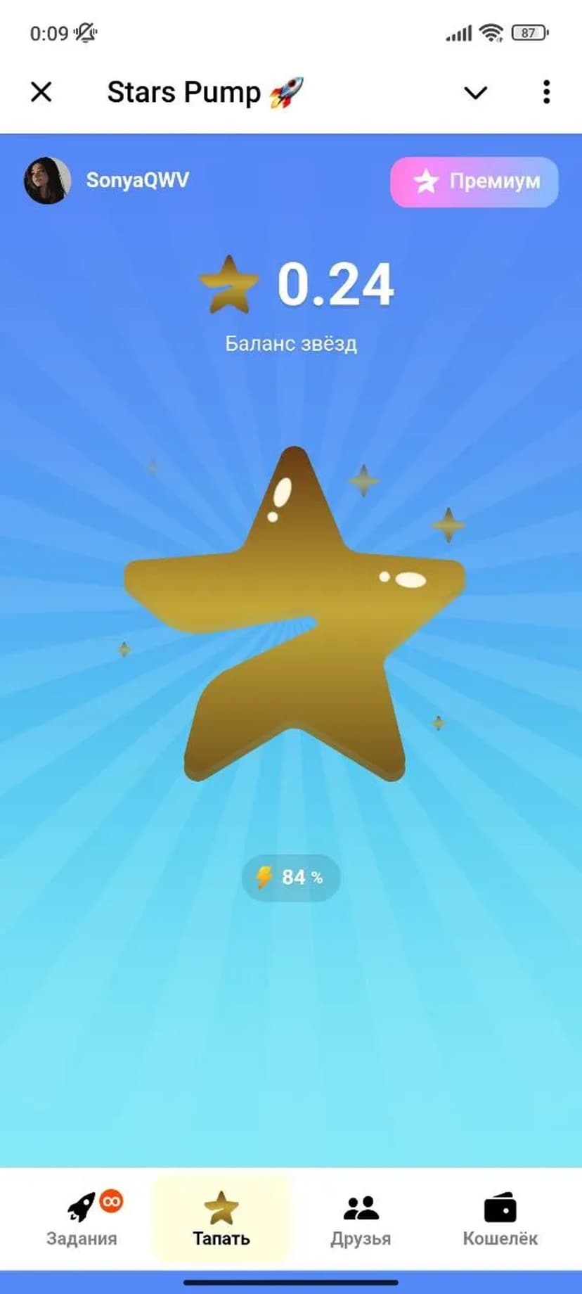 Зарабатывайте Stars тапами, заданиями и рефералами — обмен на Premium, подарки и вывод.