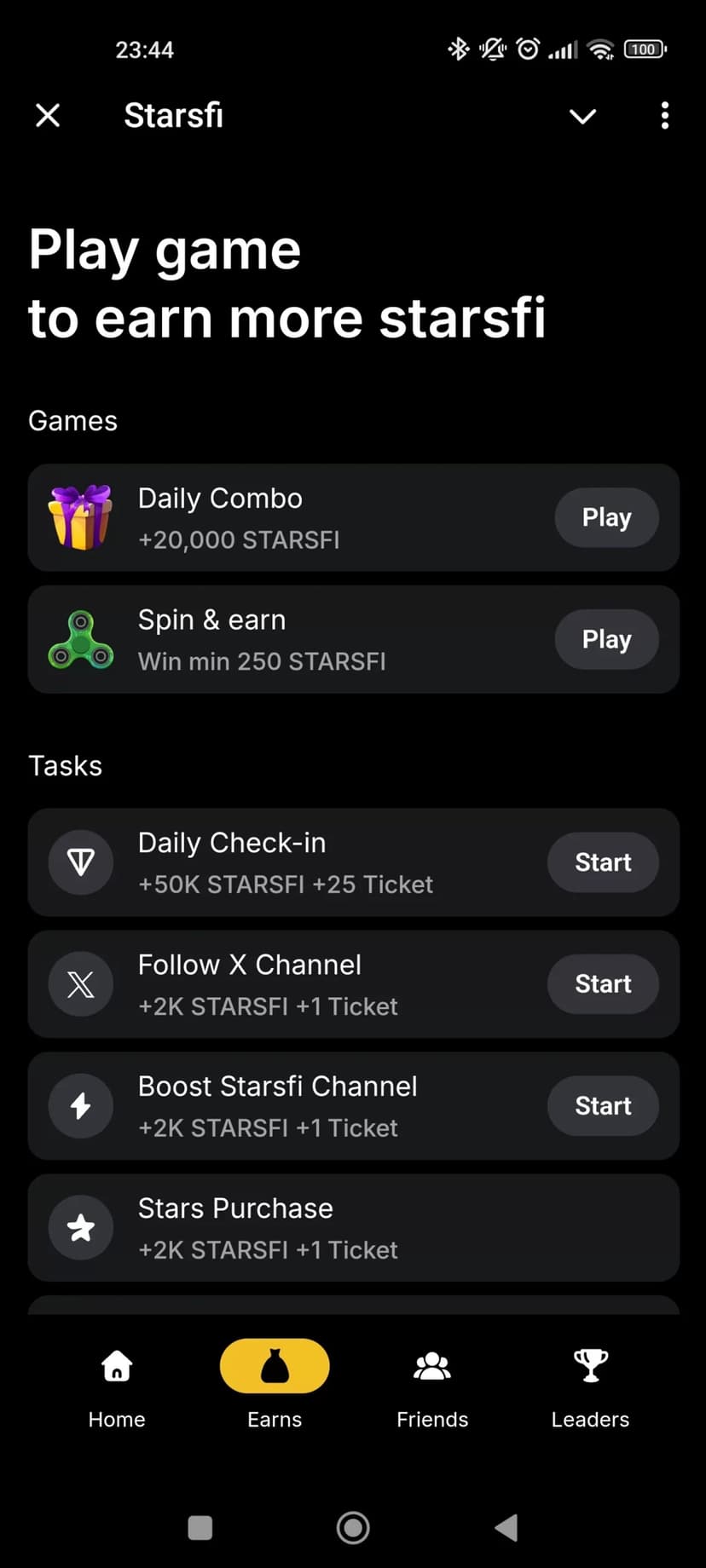 Starsfi — мини‑игра внутри Telegram с упором на ежедневные задания, комбо и соревновательный рейтинг. Пользователи зарабатывают очки и награды, продвигаясь в лидербордах и взаимодействуя с другими игроками.