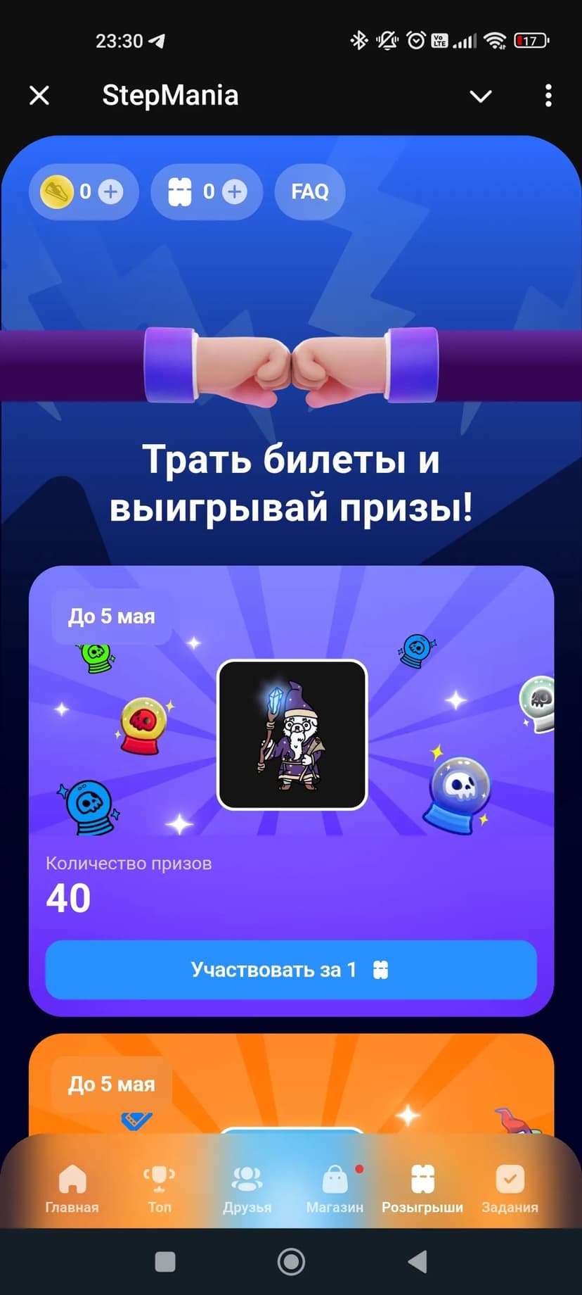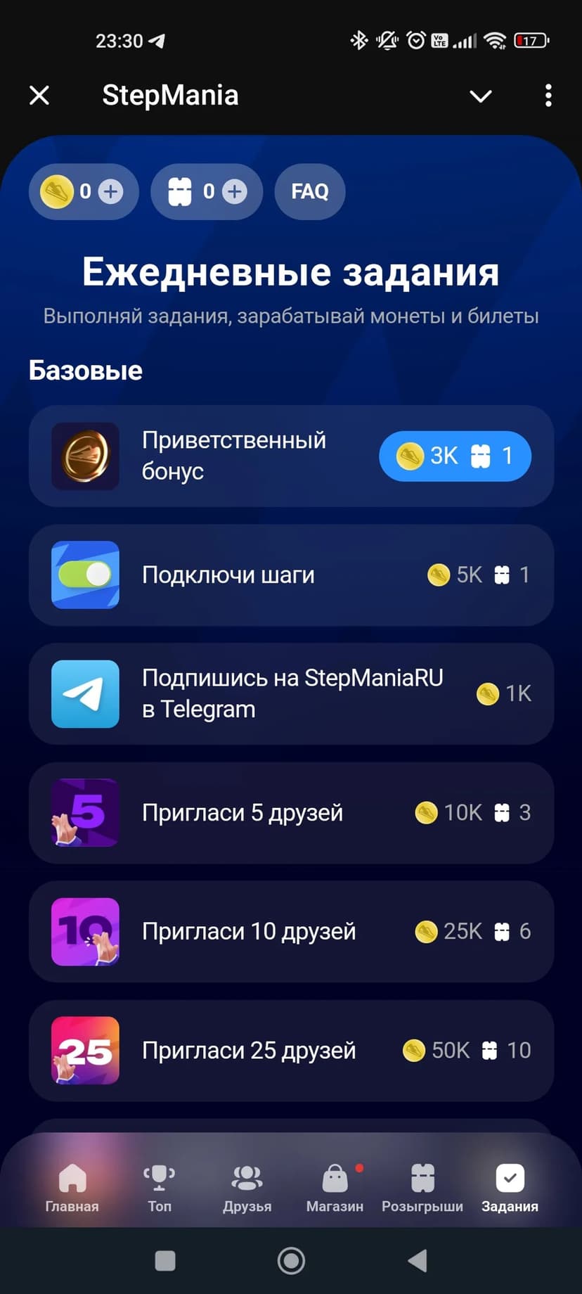 Подсчет шагов с конверсией в монеты — соревнуйтесь, обменивайте на билеты