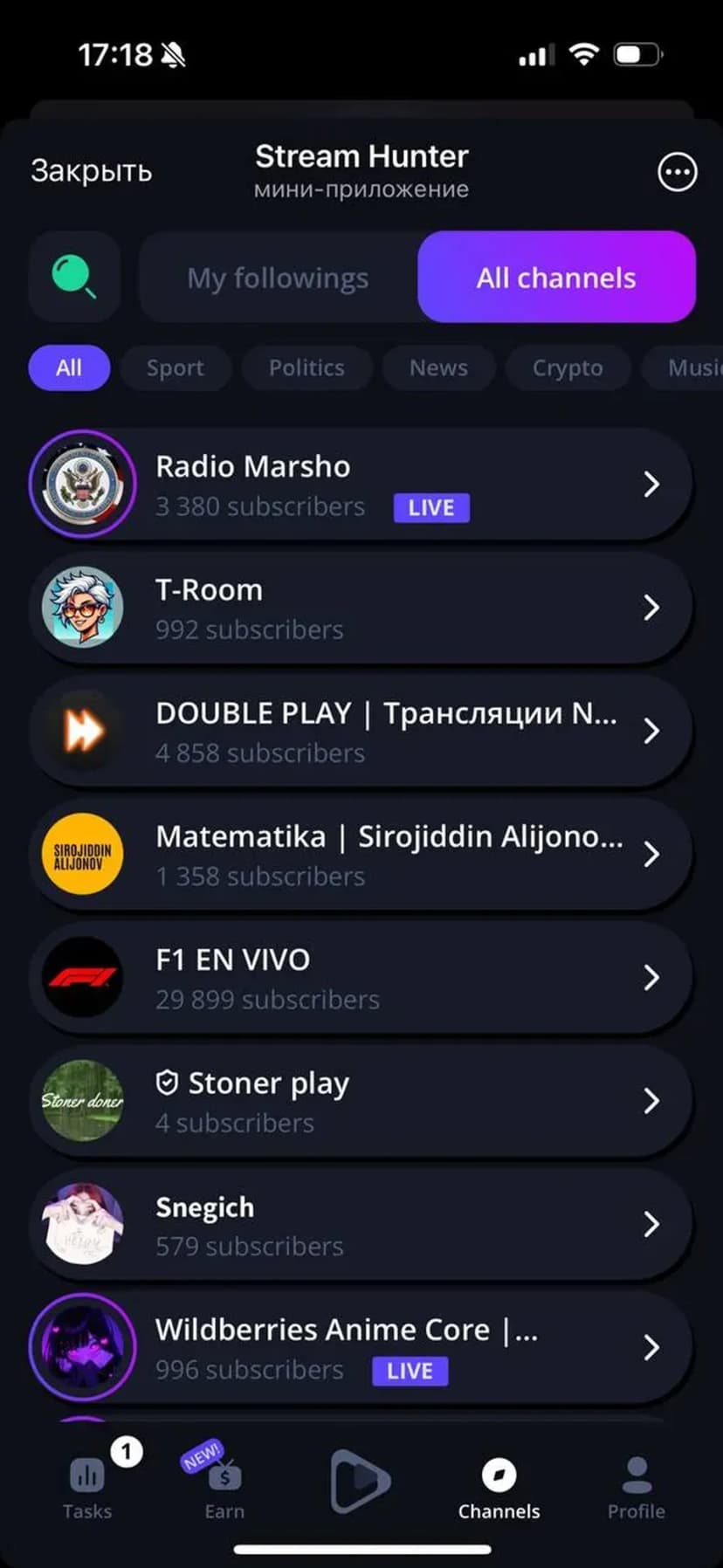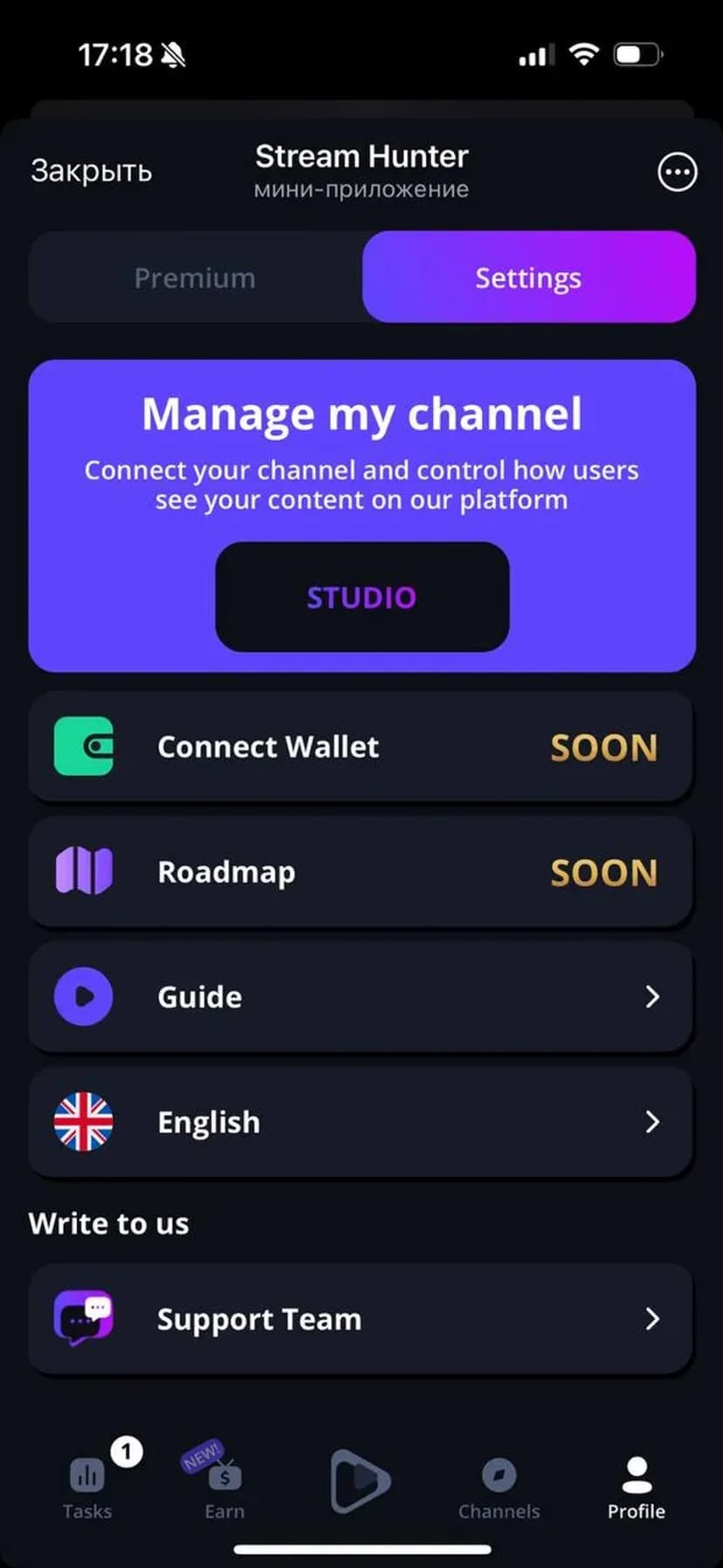 *Нажимая "Открыть в Telegram", вы перейдете к приложению Stream Hunter в мессенджере Telegram