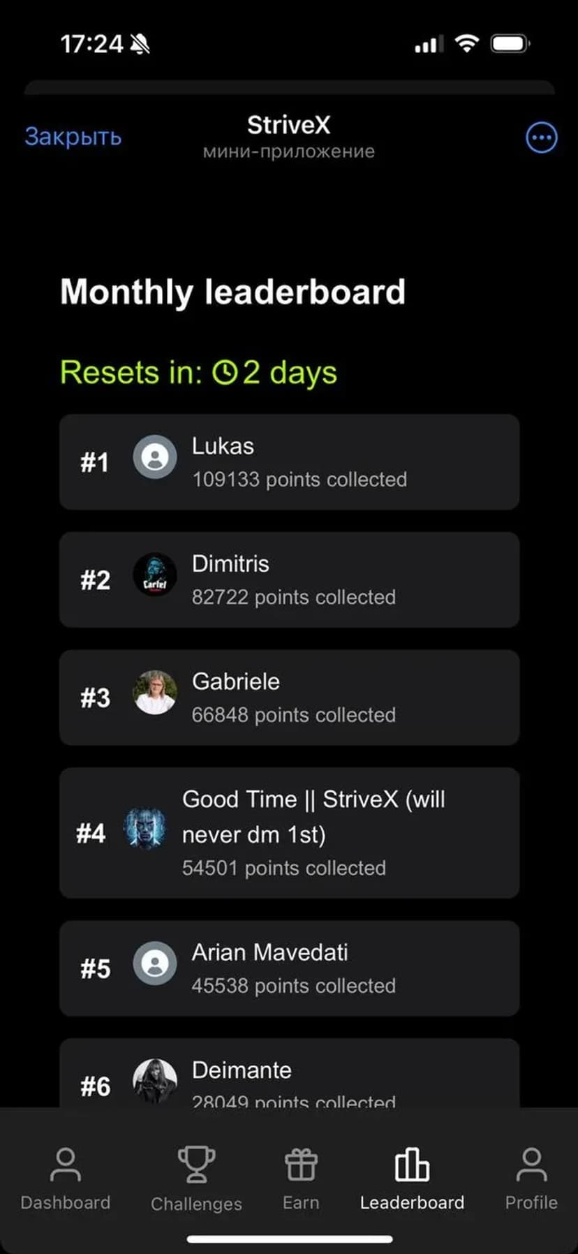 *Нажимая "Открыть в Telegram", вы перейдете к приложению StriveX в мессенджере Telegram