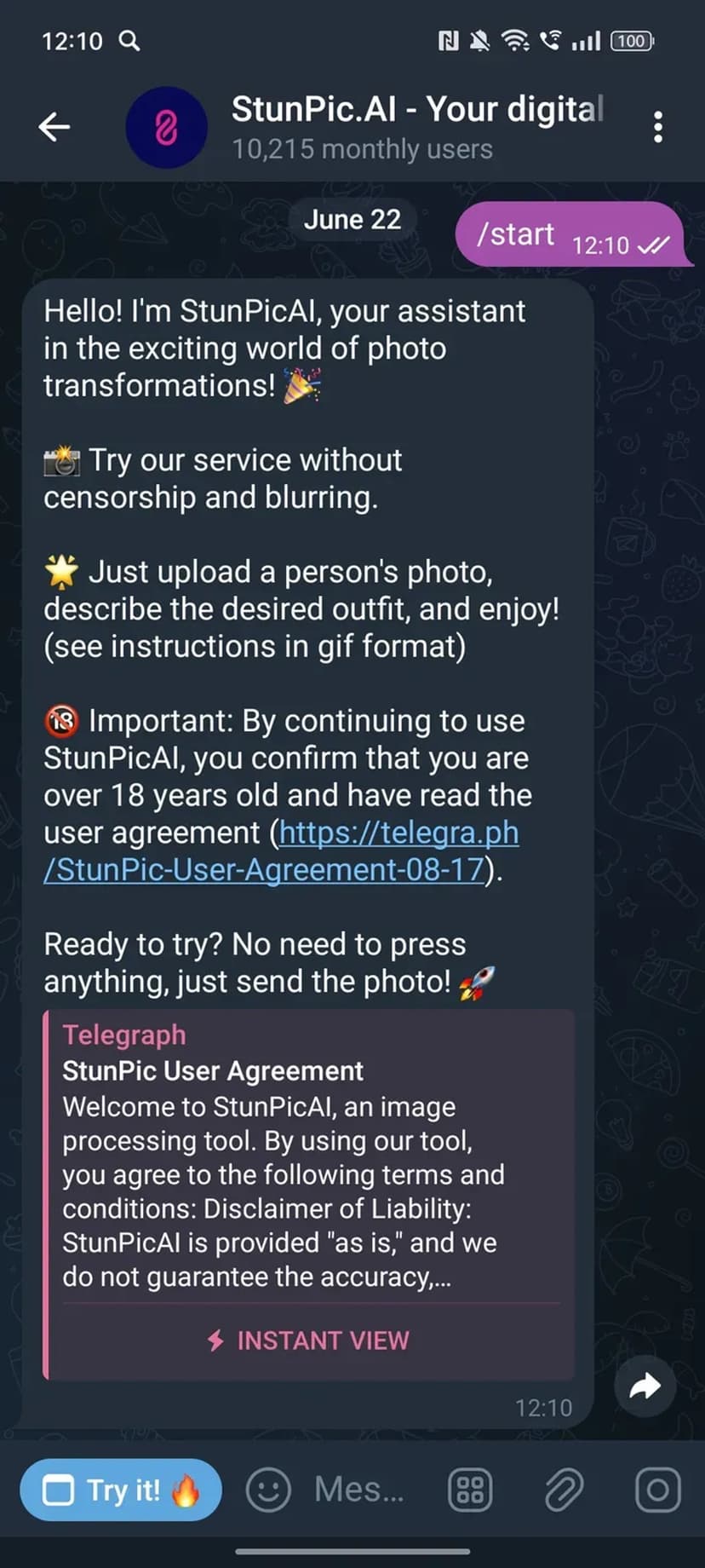 *ΠΠ°ΠΆΠΈΠΌΠ°Ρ "ΠΡΠΊΡΡΡΡ Π² Telegram", Π²Ρ ΠΏΠ΅ΡΠ΅ΠΉΠ΄Π΅ΡΠ΅ ΠΊ ΠΏΡΠΈΠ»ΠΎΠΆΠ΅Π½ΠΈΡ StunPic.AI - π Your digital looks Π² ΠΌΠ΅ΡΡΠ΅Π½Π΄ΠΆΠ΅ΡΠ΅ Telegram