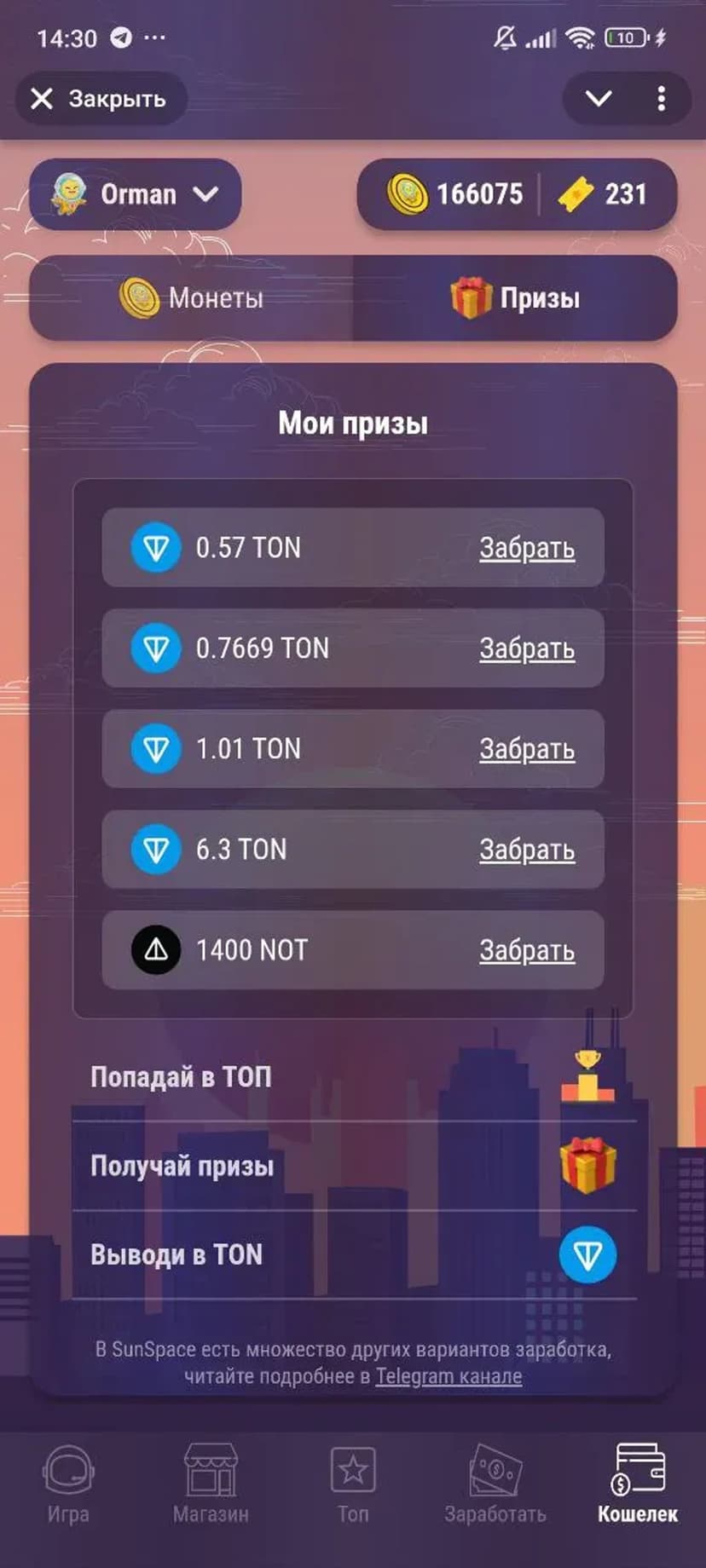 - Награды: призы в криптовалютах (TON, NOT, $SPC и другие токены) распределяются между лучшими участниками.