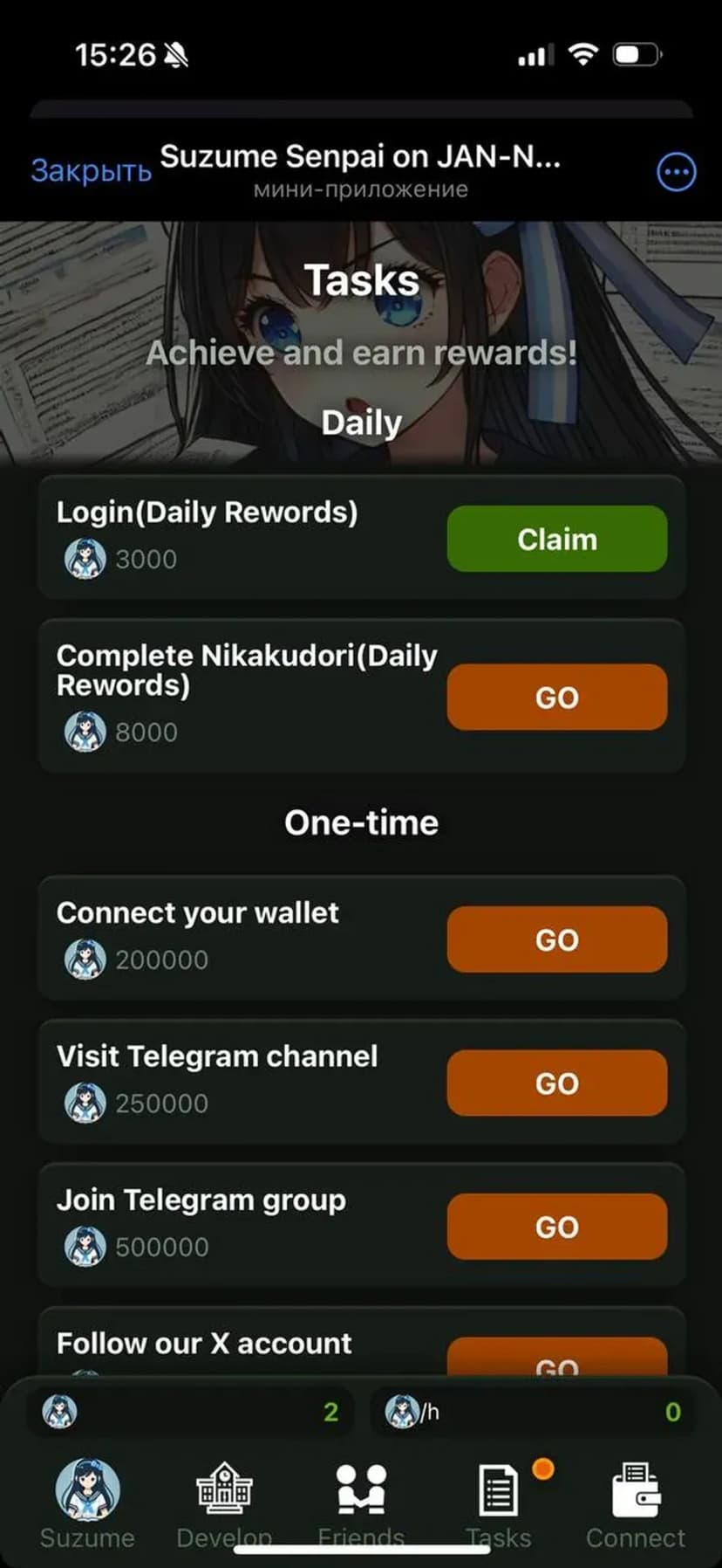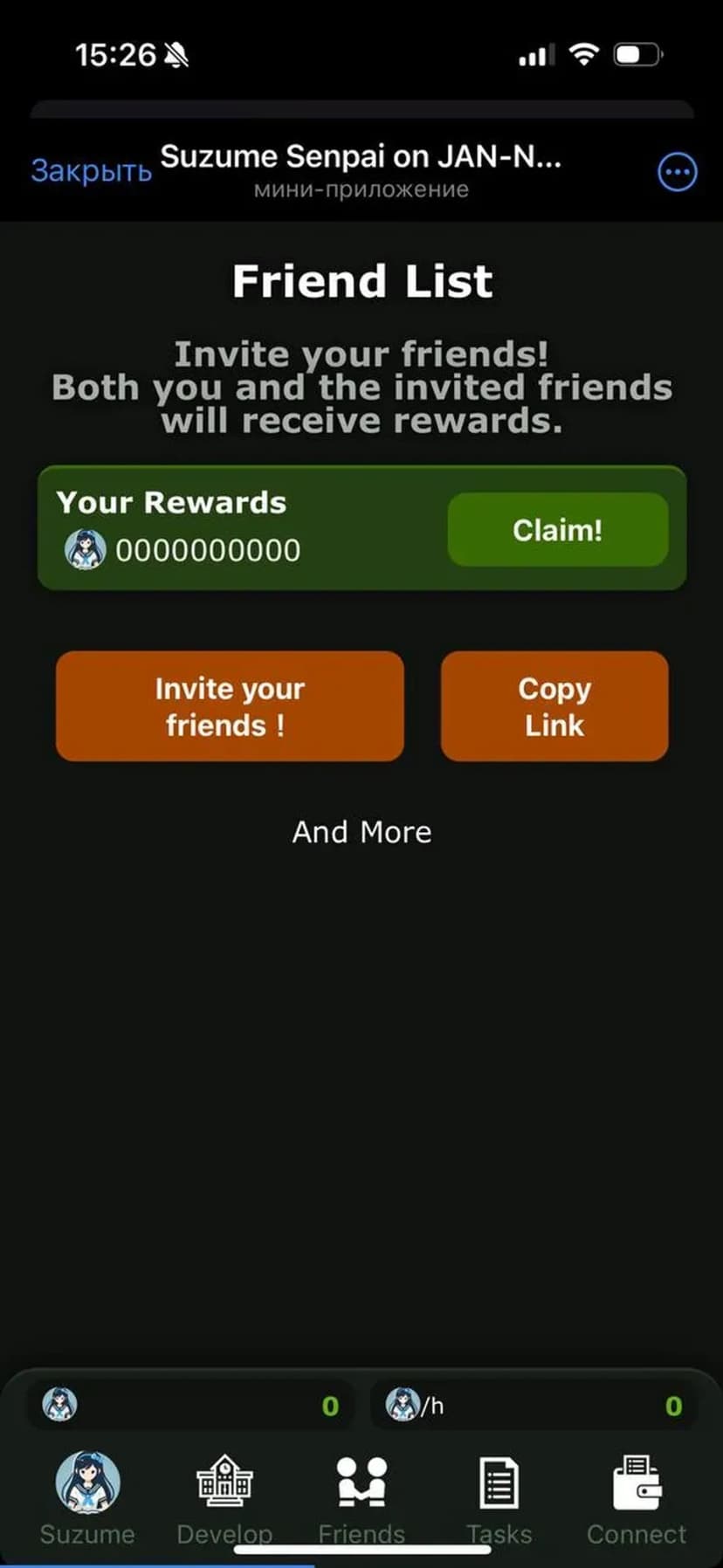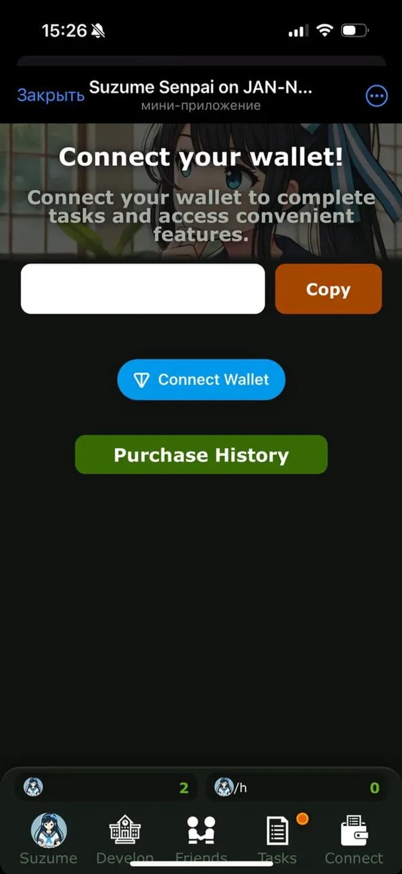 *Нажимая "Открыть в Telegram", вы перейдете к приложению Suzume Senpai on JAN-Navi в мессенджере Telegram