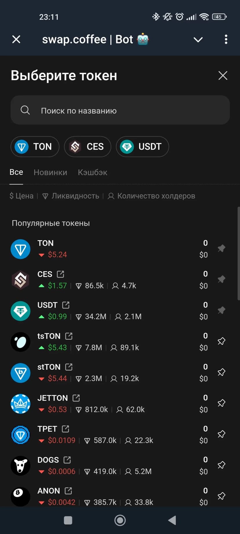*Нажимая "Открыть в Telegram", вы перейдете к приложению swap.coffee в мессенджере Telegram