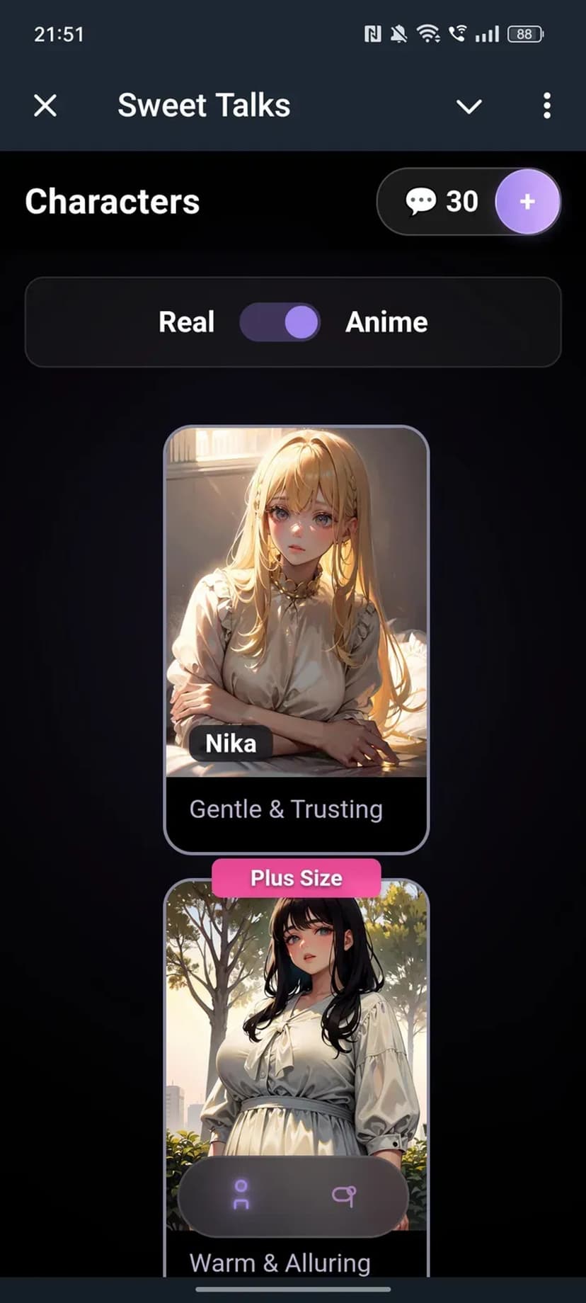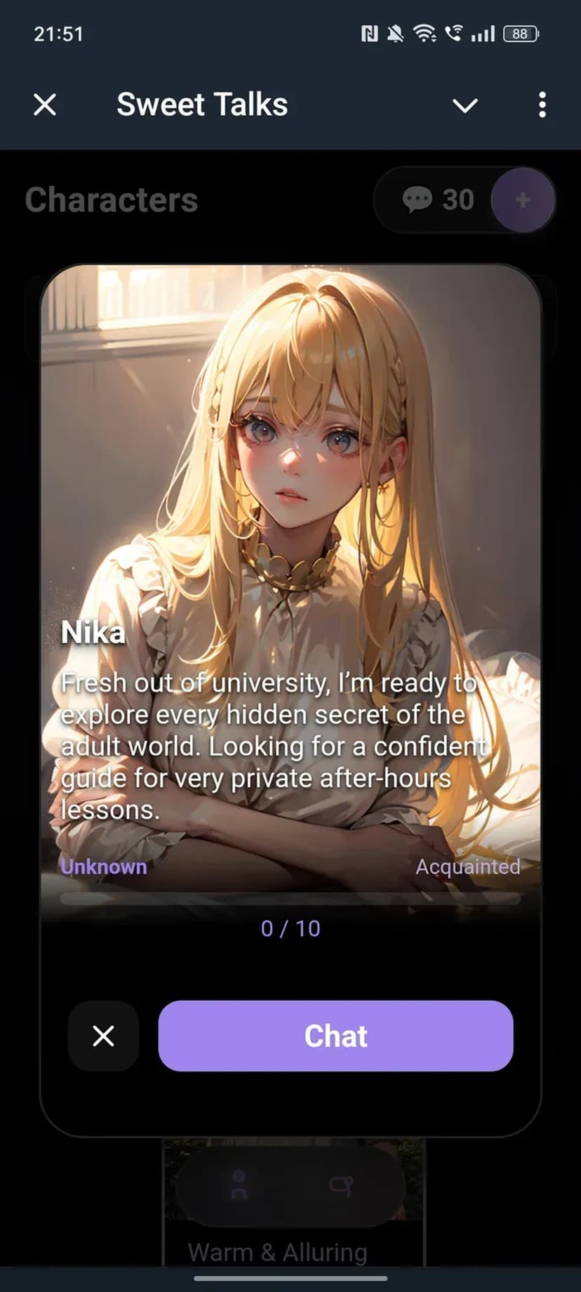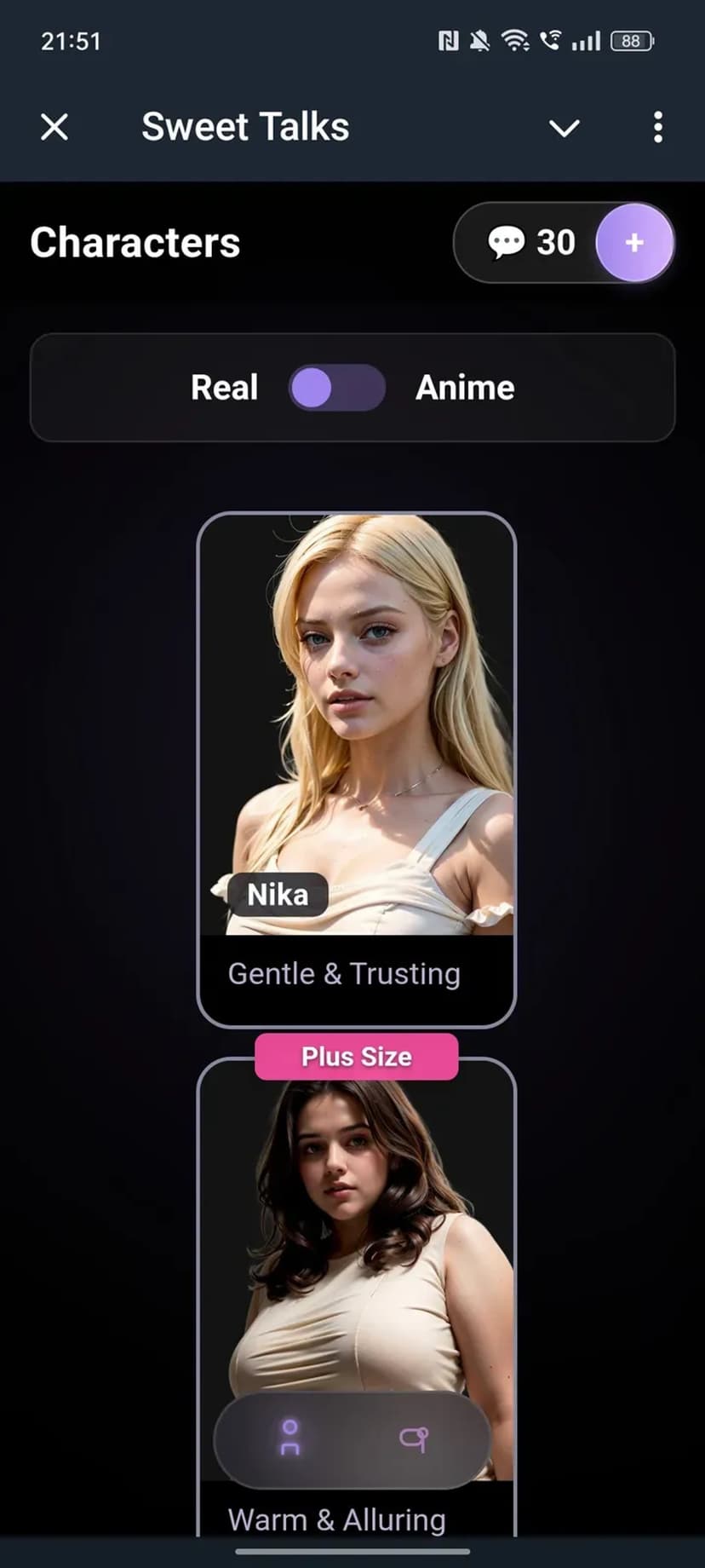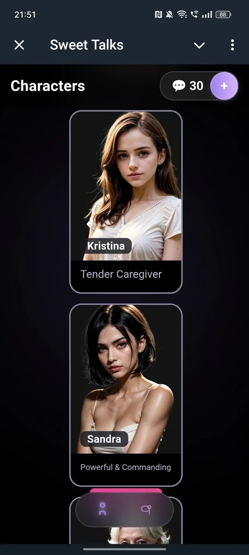Sweet Talks — интерактивный чат с виртуальными женскими персонажами на базе ИИ: выбирайте образ героини, меняйте её внешний вид и стиль общения, а также сохраняйте переписки для дальнейшего просмотра.