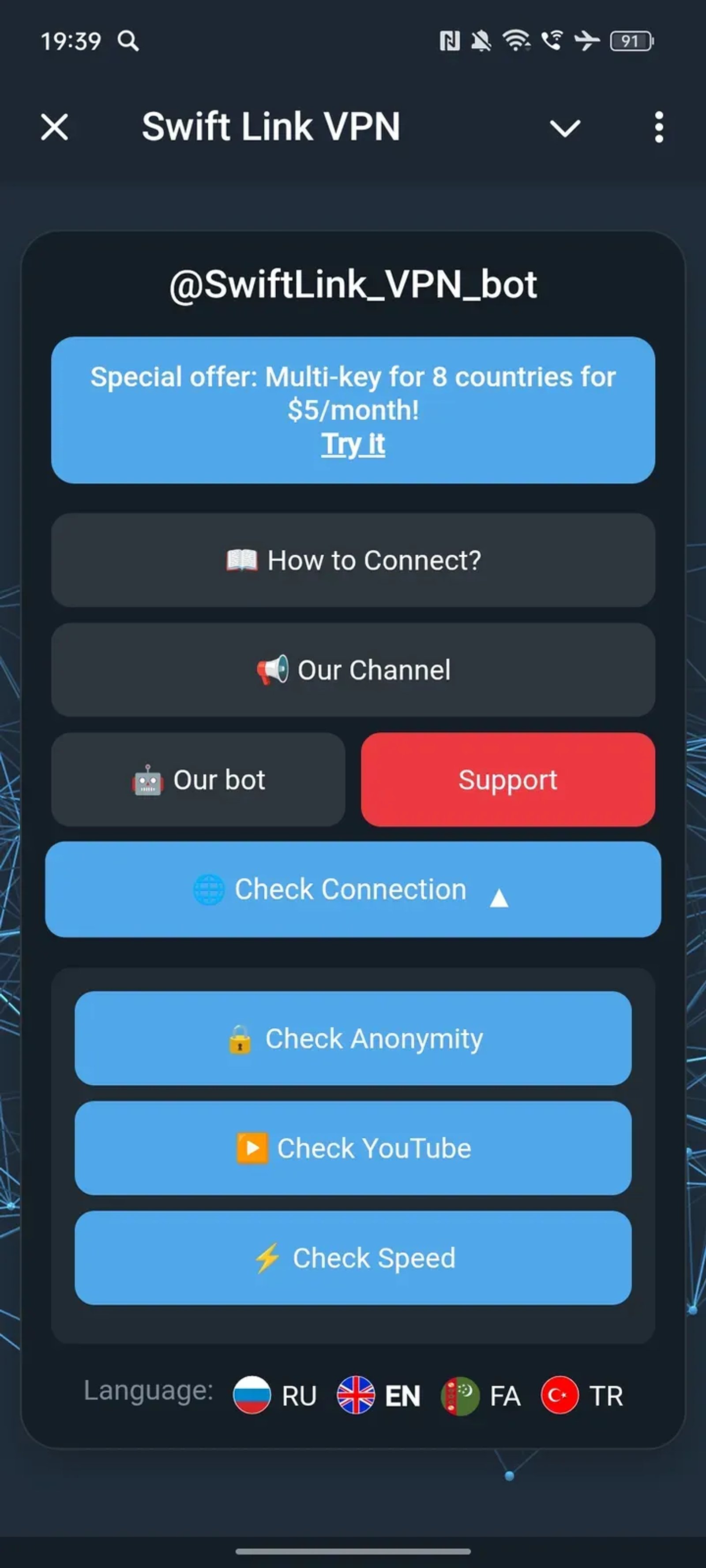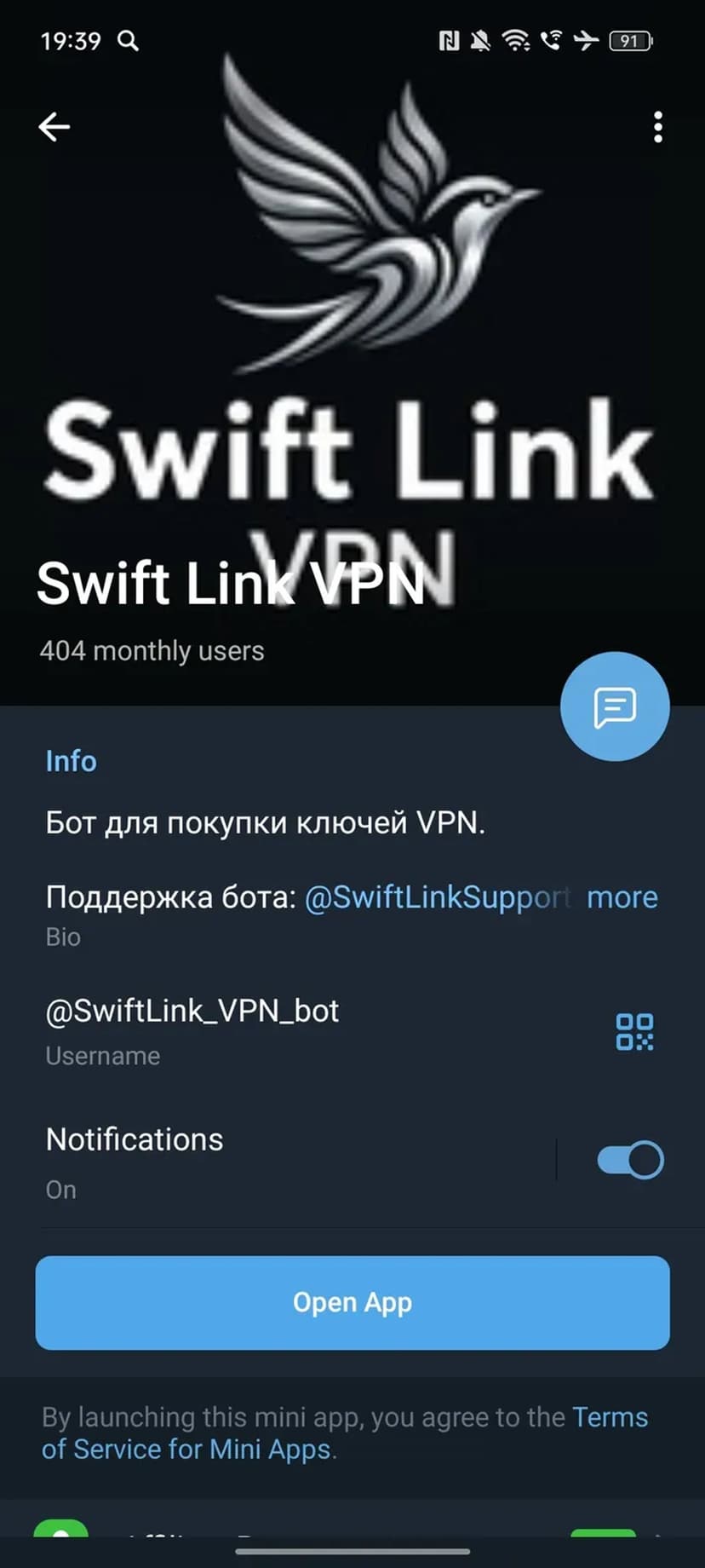 *Нажимая "Открыть в Telegram", вы перейдете к приложению Swift Link VPN в мессенджере Telegram