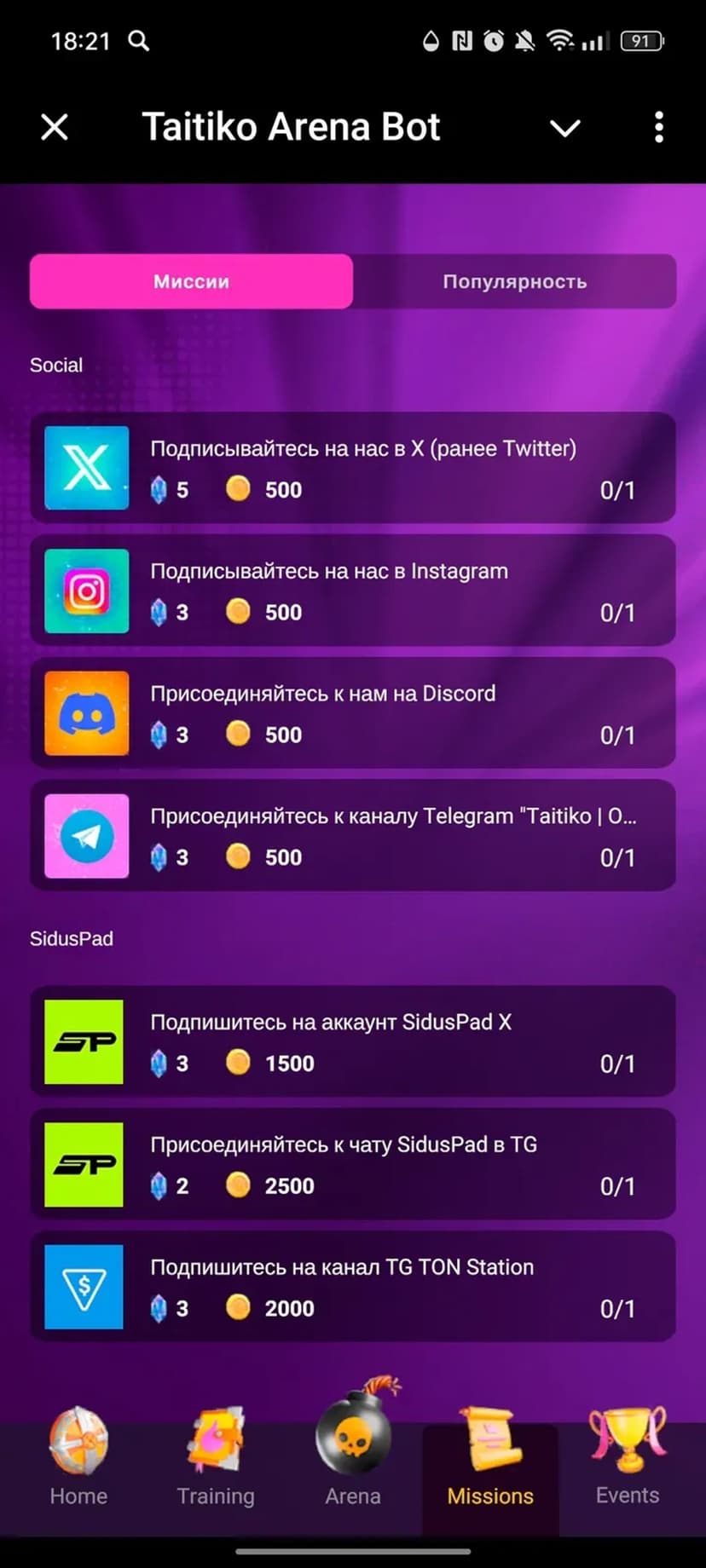 *Нажимая "Открыть в Telegram", вы перейдете к приложению Taitiko Arena Bot в мессенджере Telegram