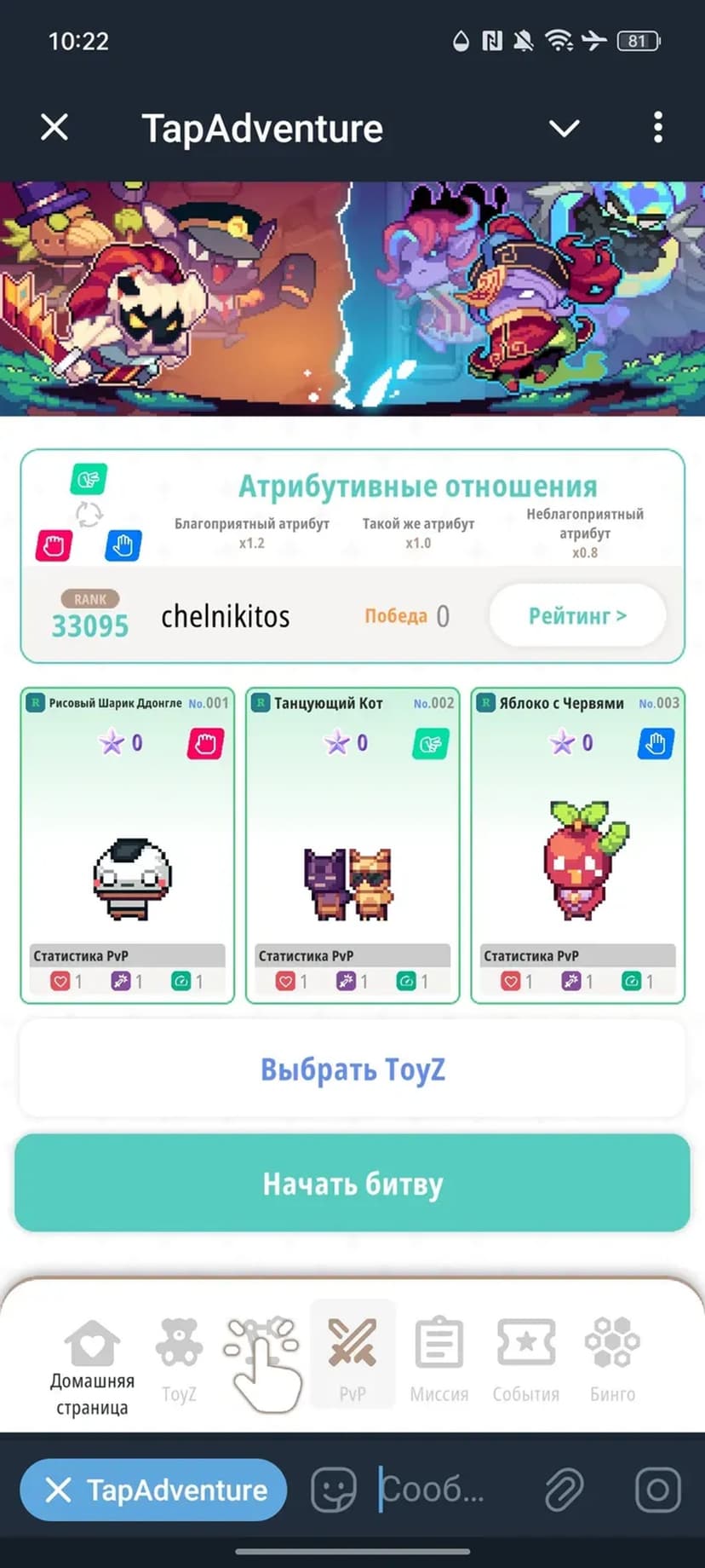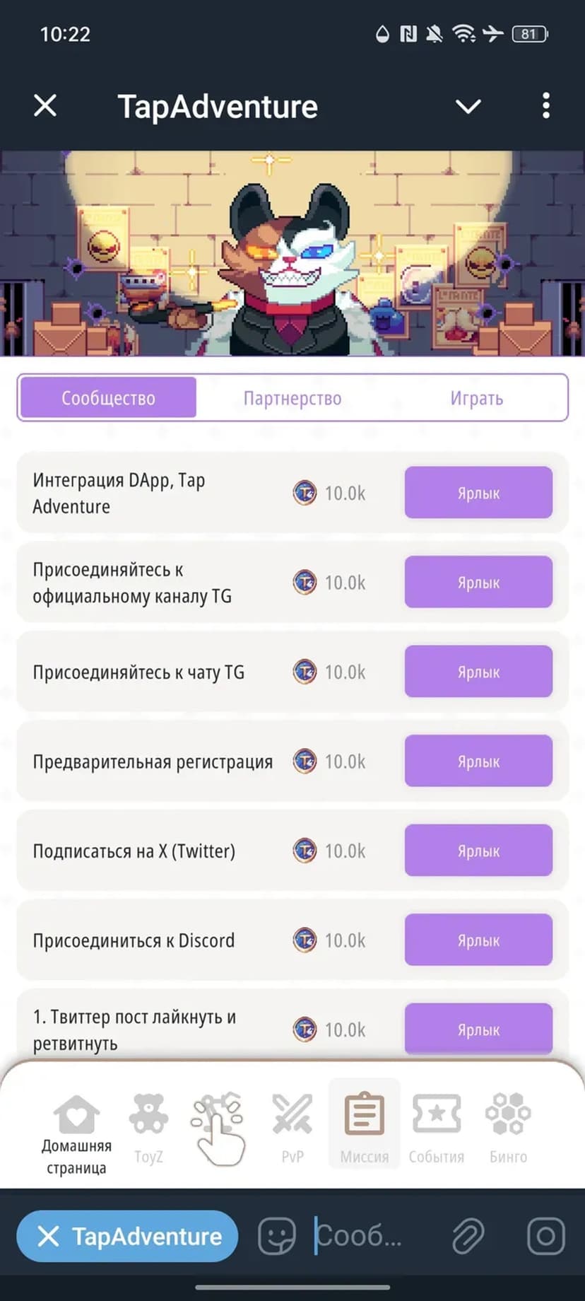 *Нажимая "Открыть в Telegram", вы перейдете к приложению TapAdventure в мессенджере Telegram