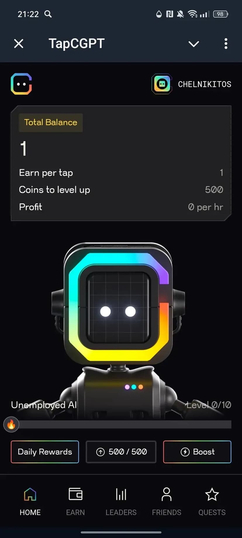 TapCGPT — симулятор AI‑стартапа, в котором вы развиваете виртуальную компанию, создавая и улучшая алгоритмы, нанимая сотрудников и увеличивая доход через быстрые тап‑взаимодействия. Прогресс приносит внутриигровые награды, включая $CGPT‑токены, и открывает новые функции и достижения.