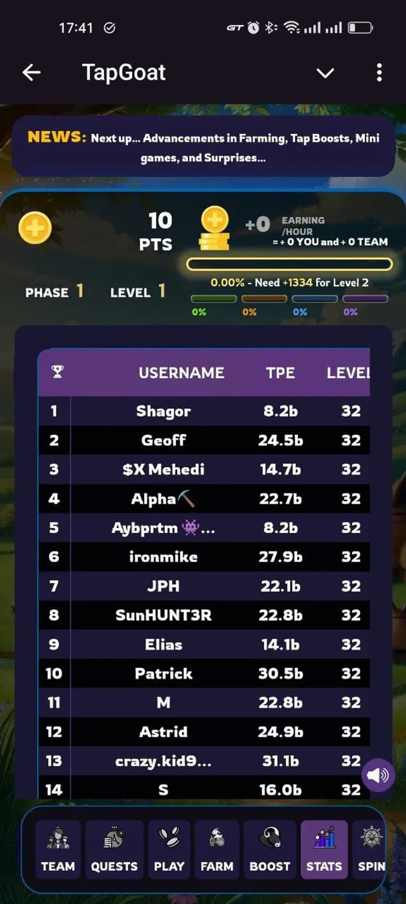 TapGoat — мини-бот в Telegram, предназначенный для сбора очков через реферальную систему ещё до выхода основной игры. Пользователи получают персональную реферальную ссылку и за каждого привлечённого получают очки и дополнительные бонусы за активность приглашённых.