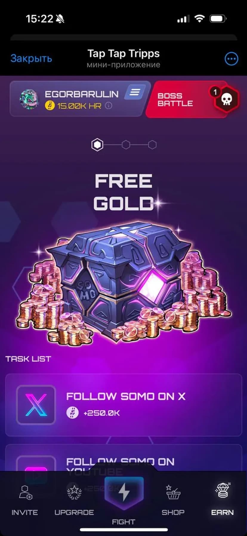 Tap Tap Tripps — первая игра трилогии SOMO. Простая и доступная мини-игра, где игроки накапливают внутриигровое золото и получают токен $SOMO за выполнение элементарных игровых действий.