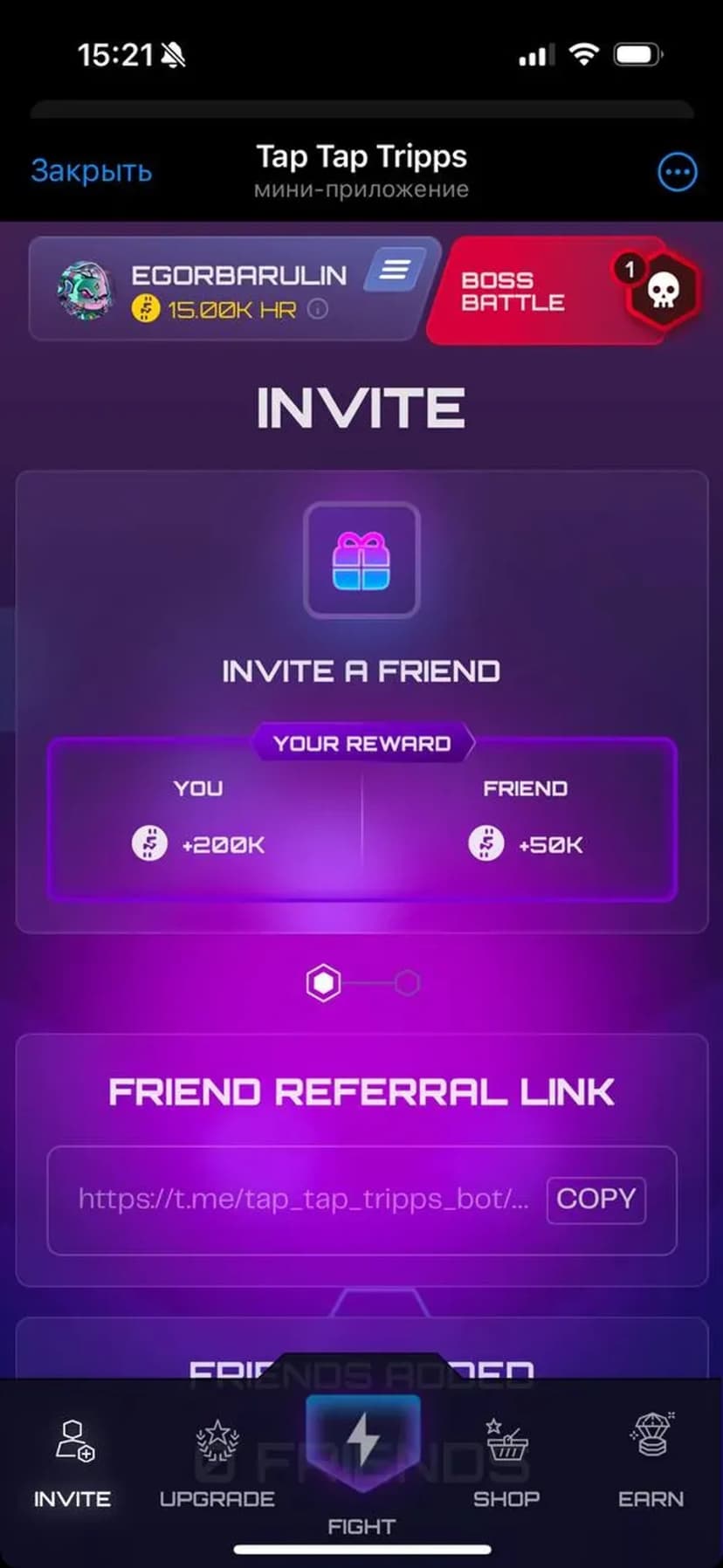 В Tap Tap Tripps сделан упор на социальные механики: приглашая друзей, вы повышаете мультипликаторы и ускоряете прогресс. Игра работает внутри Telegram и не требует отдельной регистрации, что упрощает вход и взаимодействие.