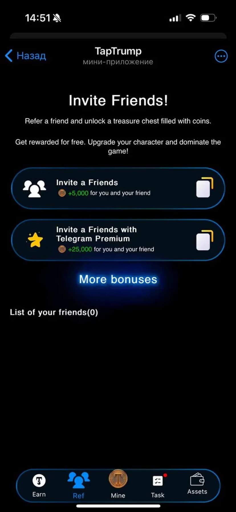*Нажимая "Открыть в Telegram", вы перейдете к приложению TapTrump в мессенджере Telegram