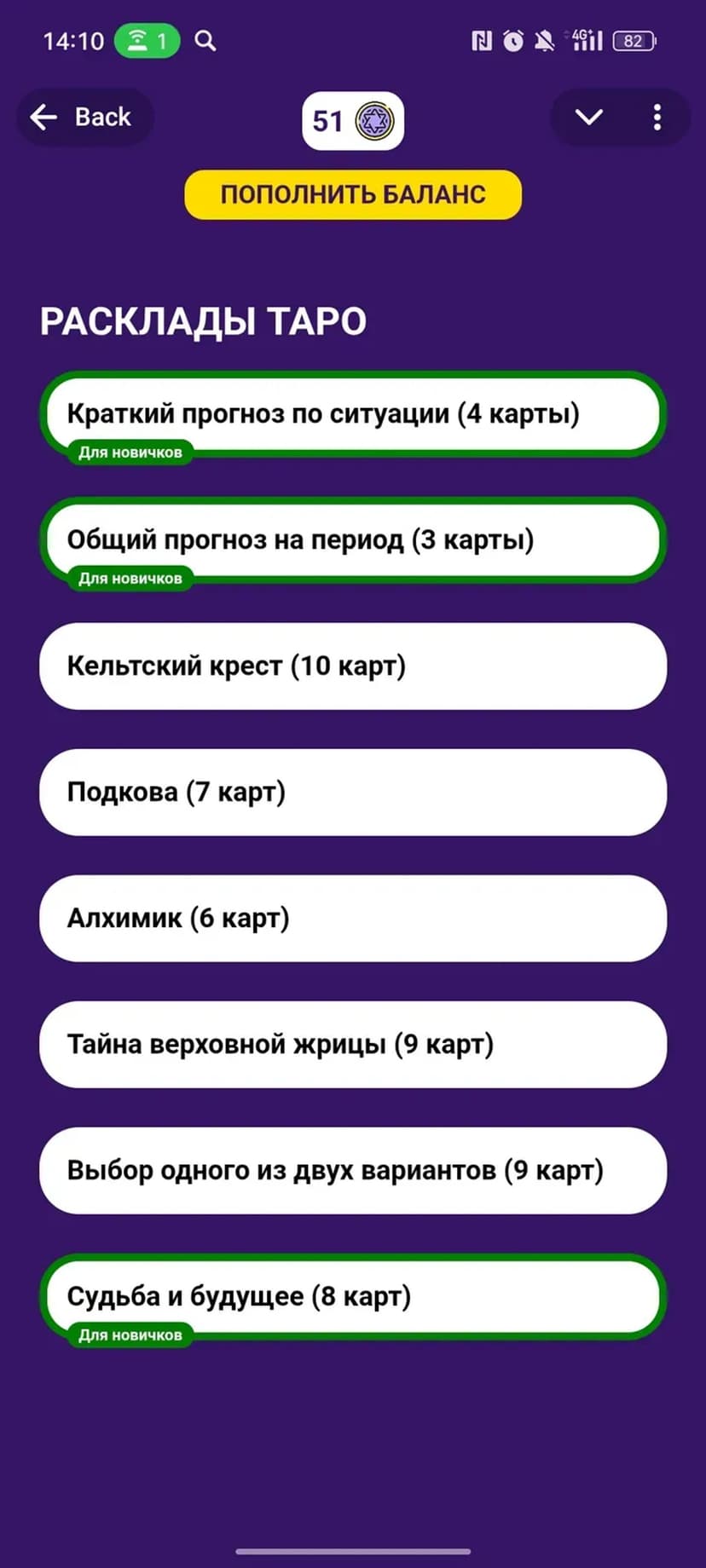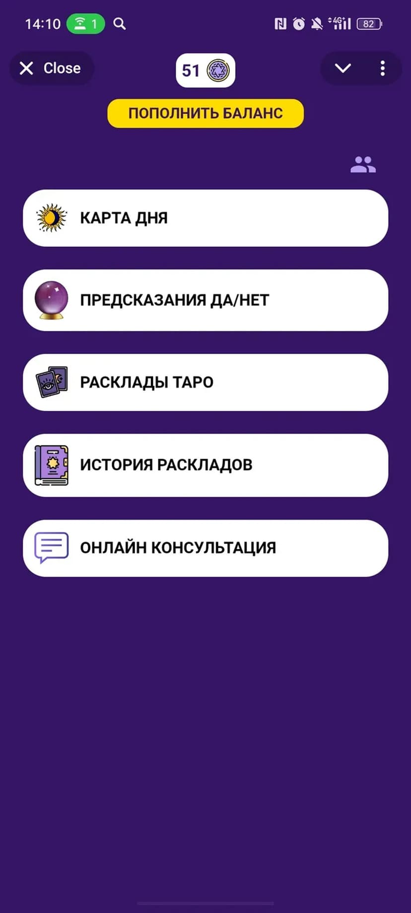 - Разнообразие форматов: классические и альтернативные расклады Таро, а также ответы от магического шара.