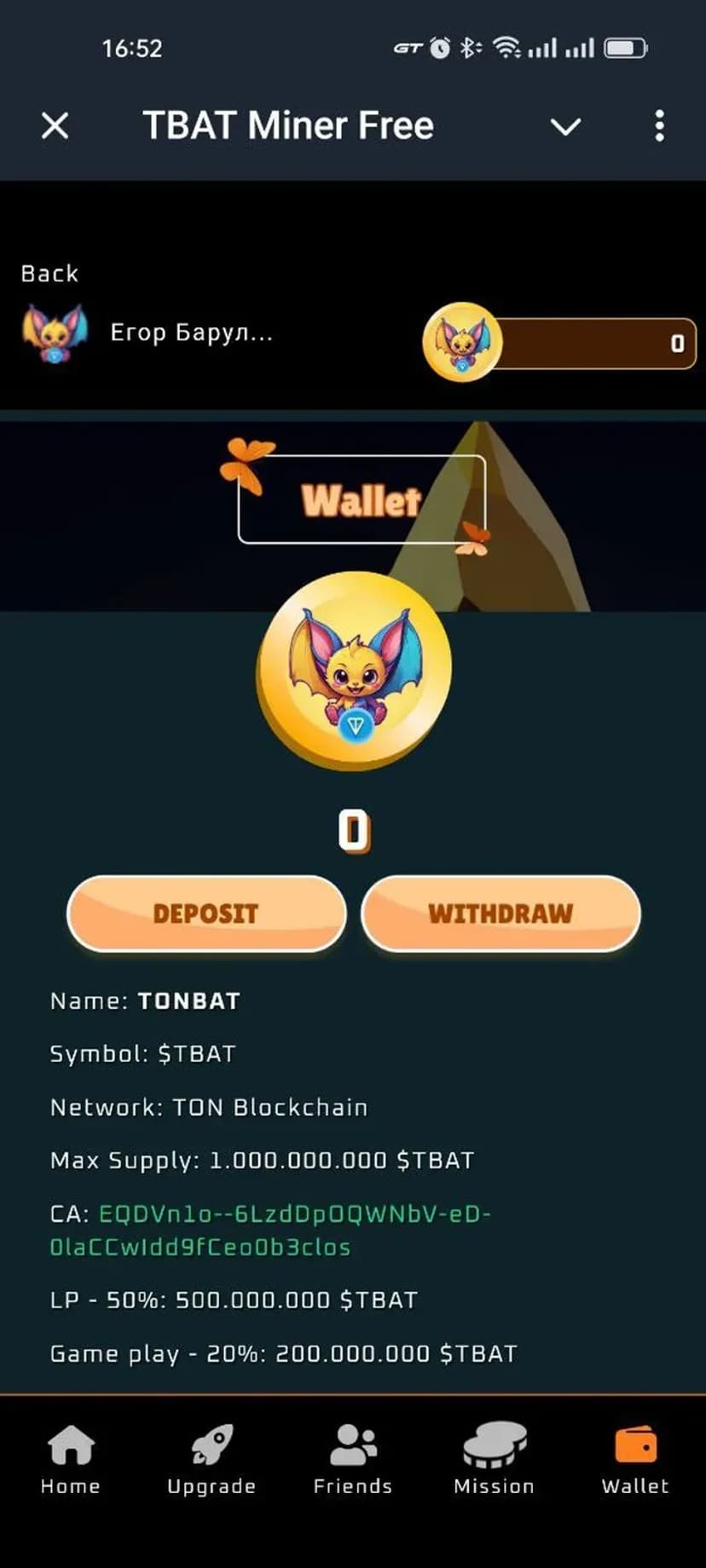 TBAT Miner Free позволяет бесплатно добывать токен $TBAT — новый MEME в экосистеме TON. Интерфейс максимально прост: баланс отображается сразу, майнинг запускается одним нажатием, а вывод средств возможен ежедневно.