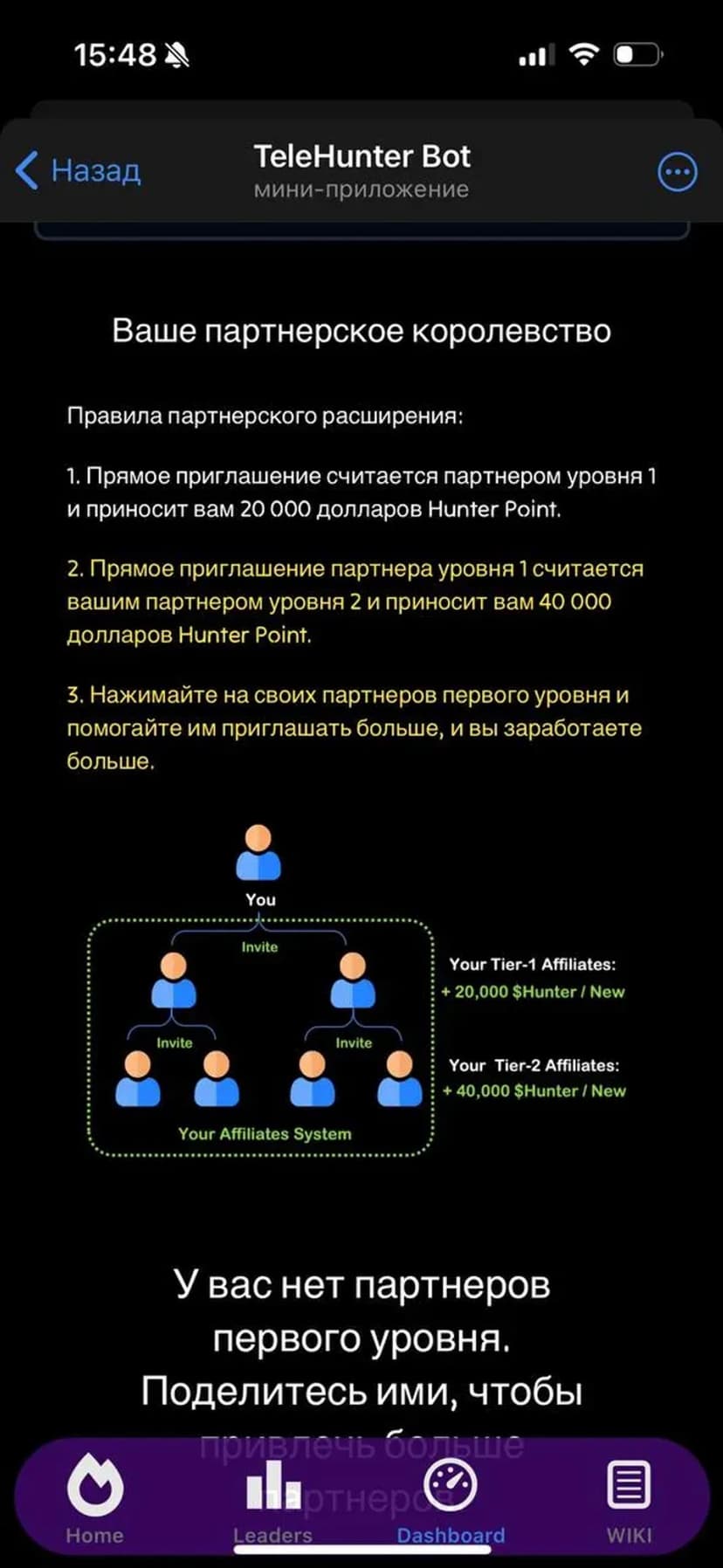 Партнёрская сеть в Telegram: автоматический учёт трафика, Hunter Points и выплаты