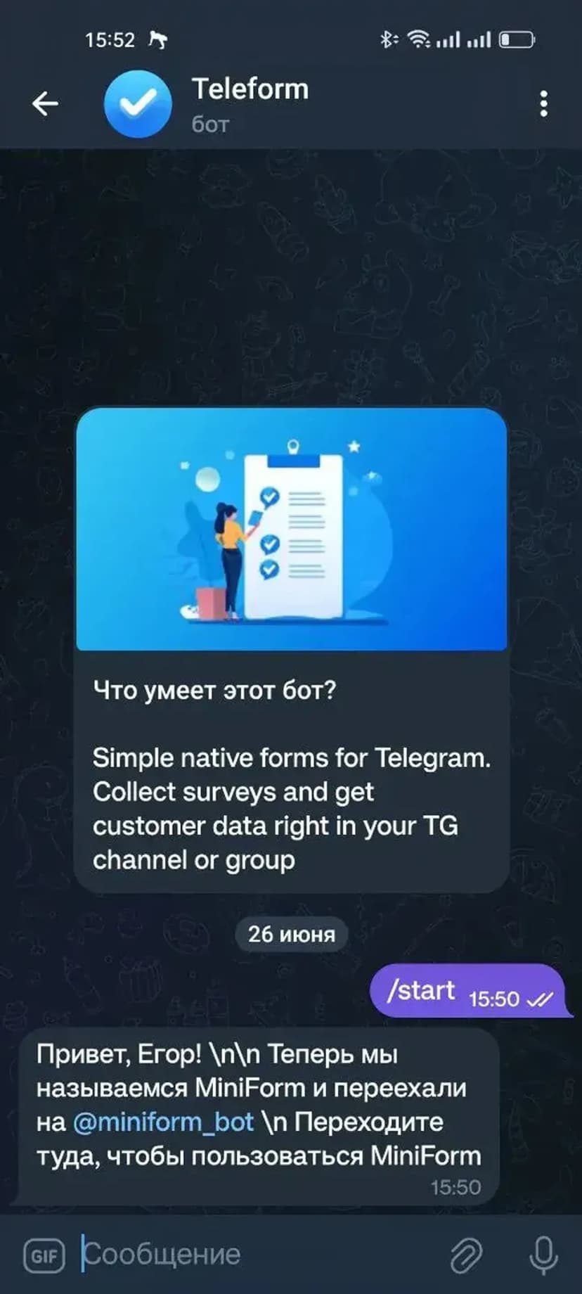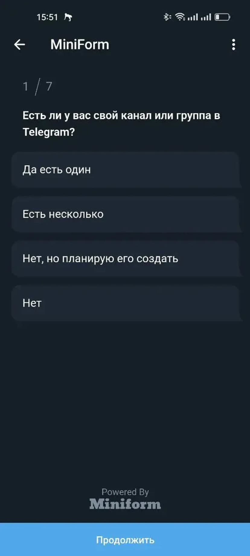 *Нажимая "Открыть в Telegram", вы перейдете к приложению Teleform в мессенджере Telegram