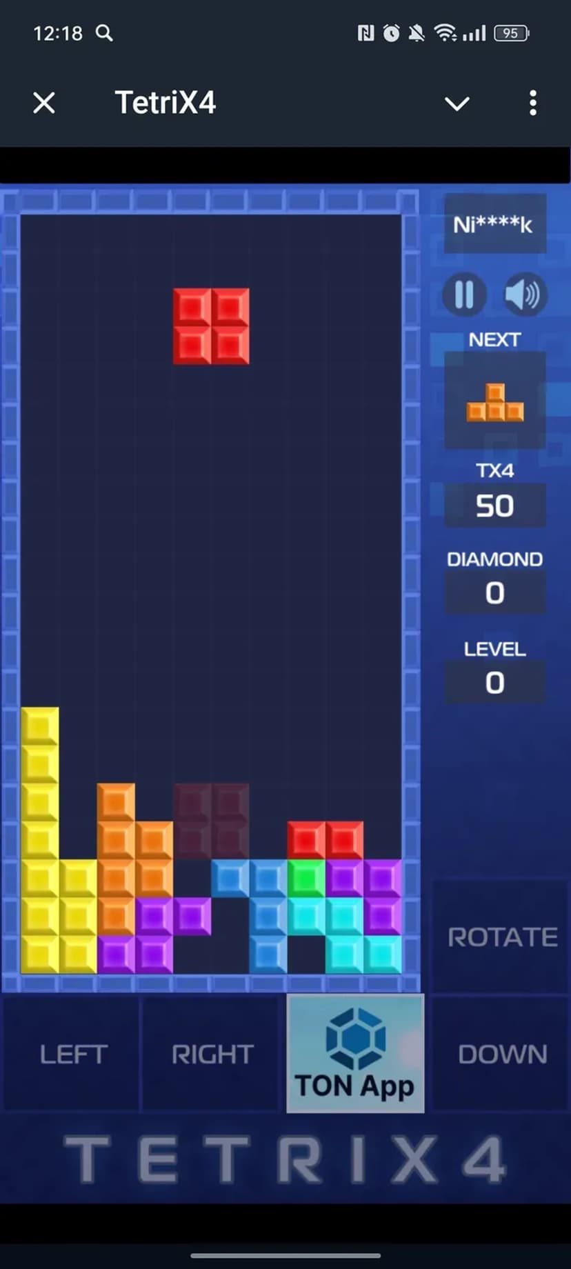 TetriX4 переносит механику тетриса в формат чат‑игры: собирайте падающие фигуры, чтобы формировать полные горизонтальные линии, которые исчезают и освобождают пространство для новых блоков.