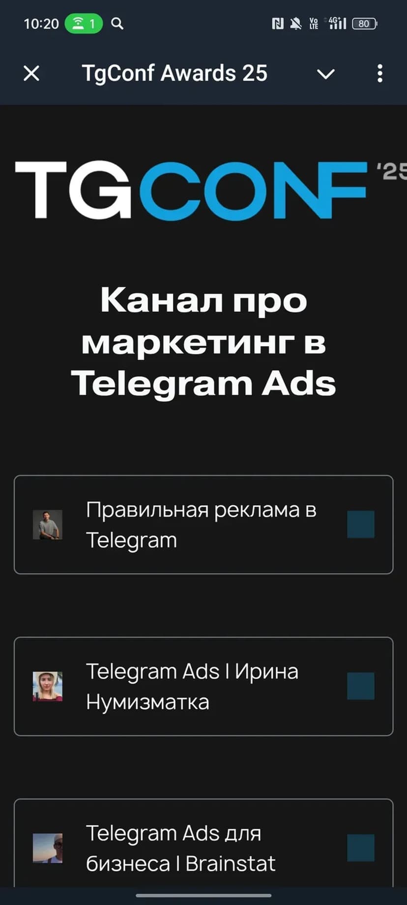 *Нажимая "Открыть в Telegram", вы перейдете к приложению TgConf Awards 25 в мессенджере Telegram