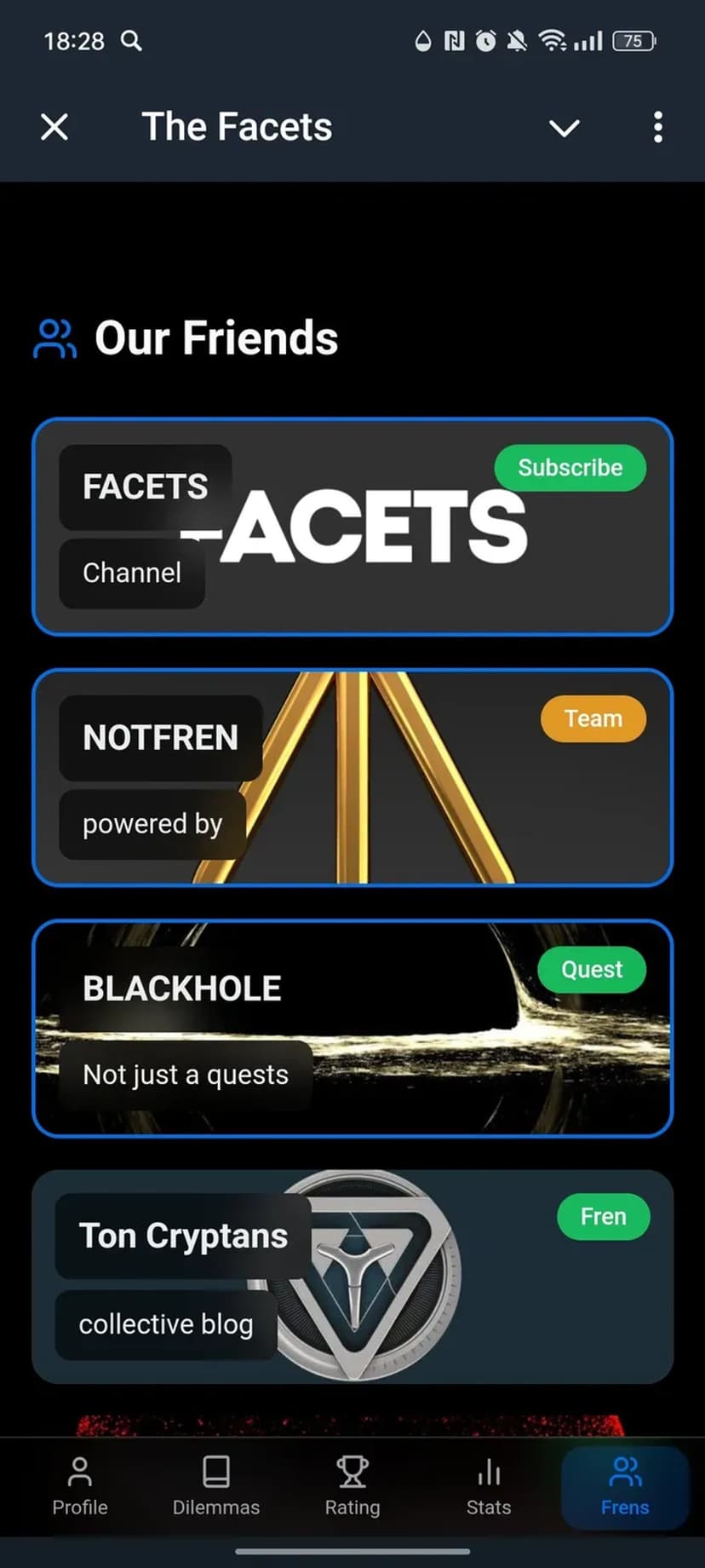 *Нажимая "Открыть в Telegram", вы перейдете к приложению The Facets в мессенджере Telegram