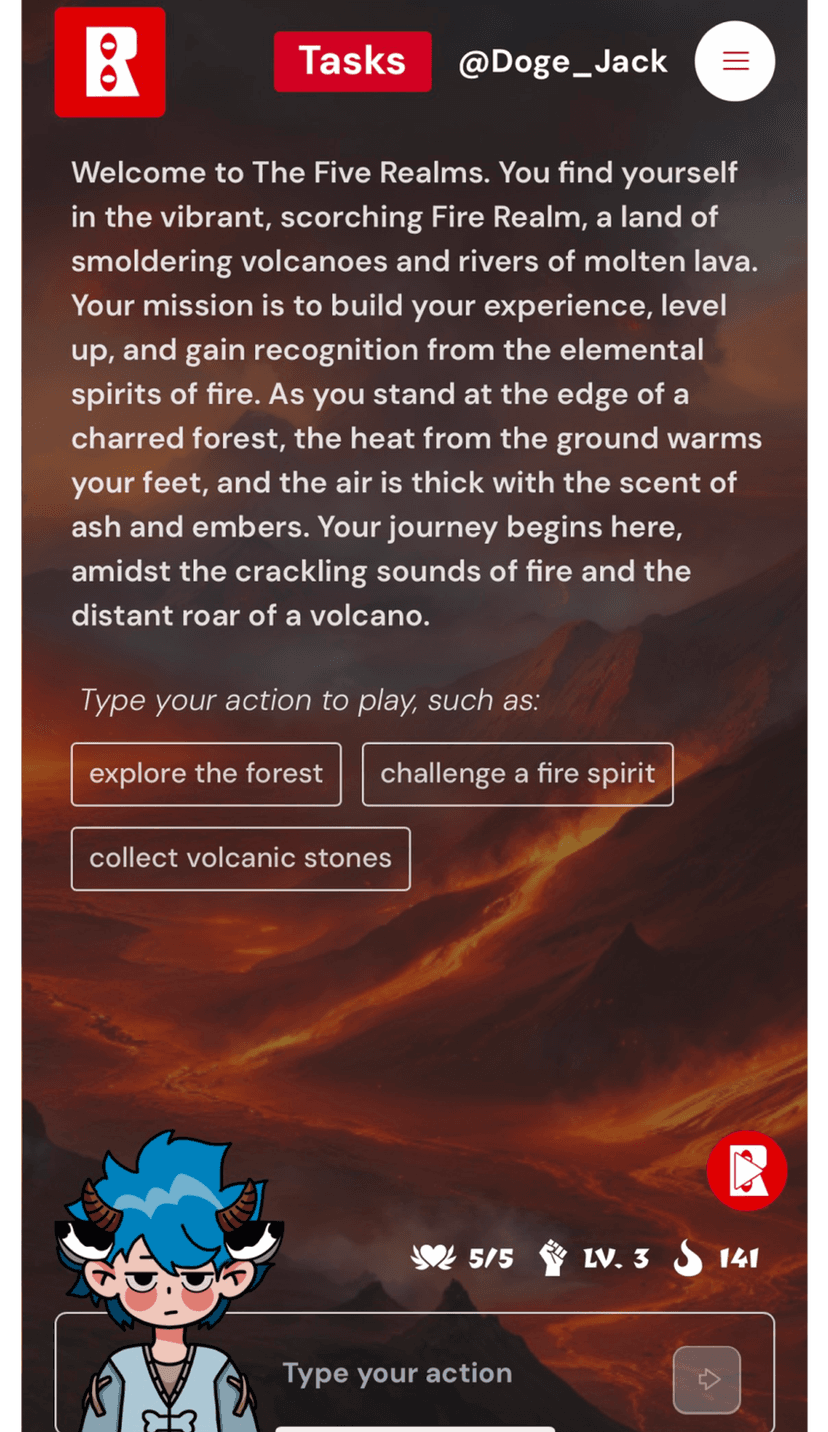 The Five Realms сочетает открытый мир, генеративный ИИ и элементы GameFi: исследуйте пять тематических территорий — Металл, Дерево, Вода, Огонь и Земля — и формируйте уникальную историю через собственные решения.