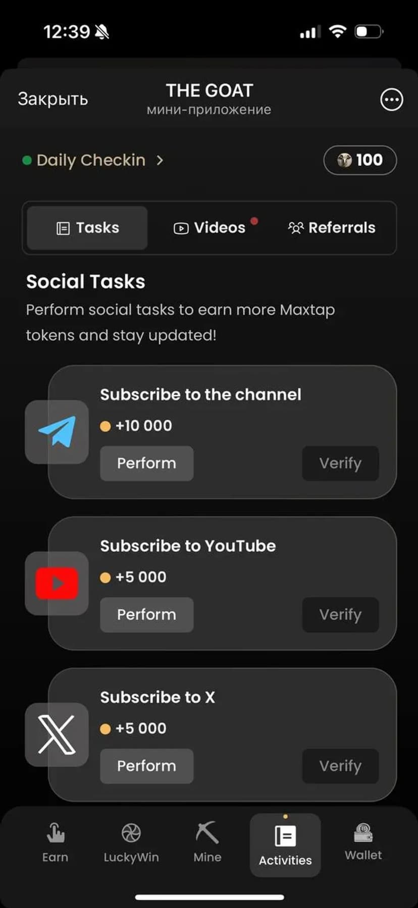 THE GOAT — бот для прозрачного и честного распределения криптовалюты: пользователи получают вознаграждения за выполнение интерактивных заданий, участие в мини‑играх и привлечение новых участников через реферальную систему.