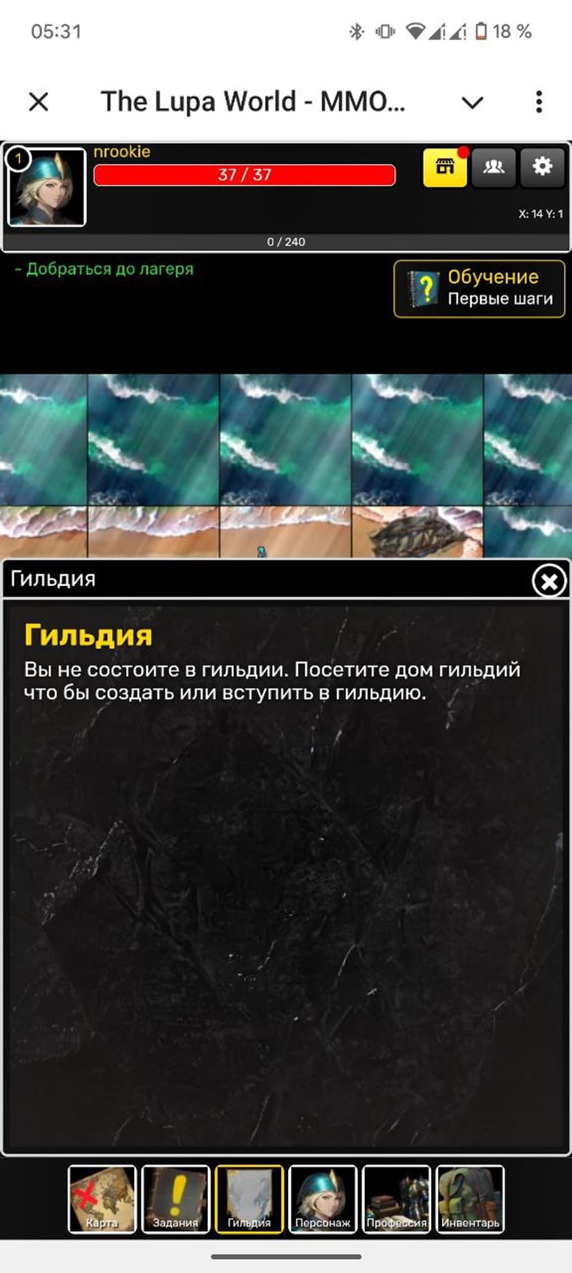 - Классические RPG‑механики: уровни, профессии, инвентарь, задания и гильдии.