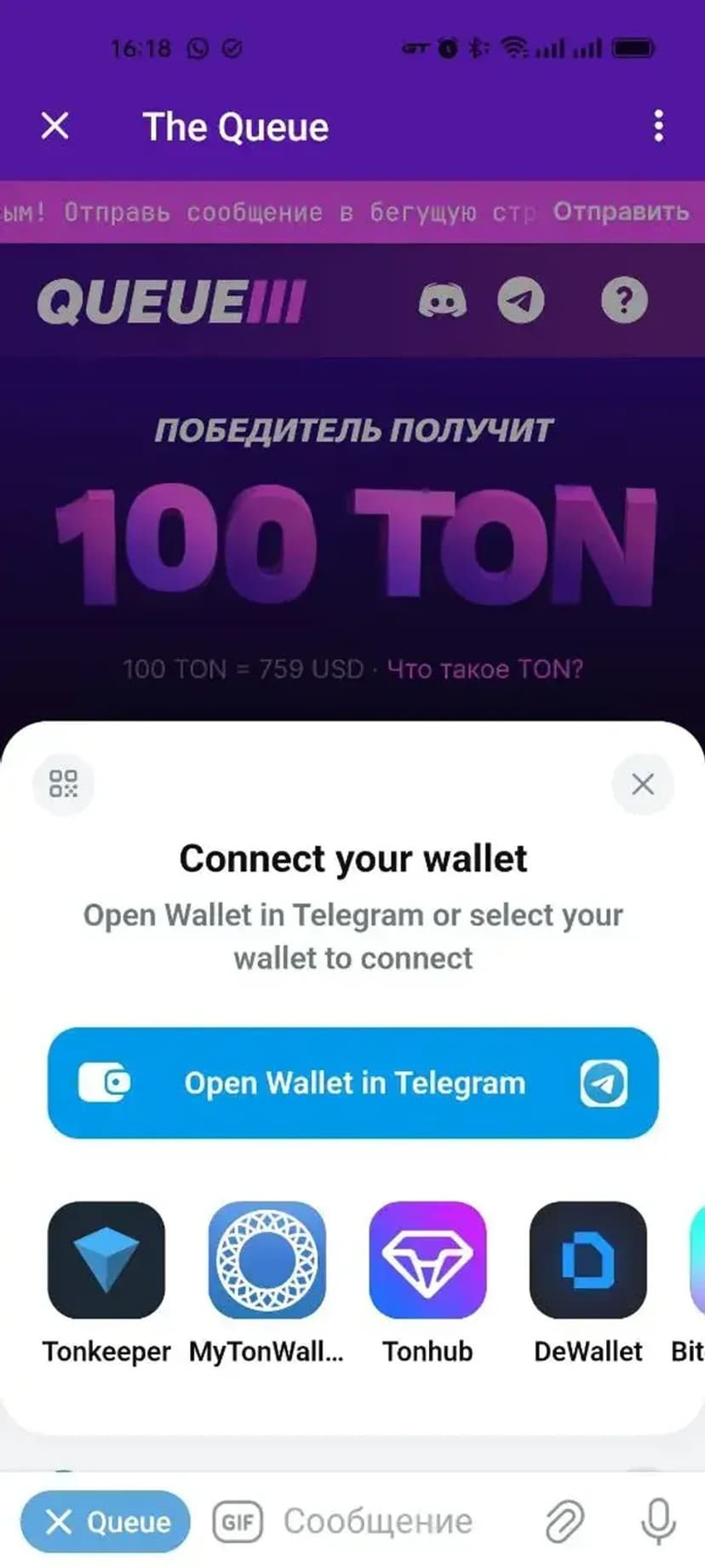 *Нажимая "Открыть в Telegram", вы перейдете к приложению The Queue в мессенджере Telegram