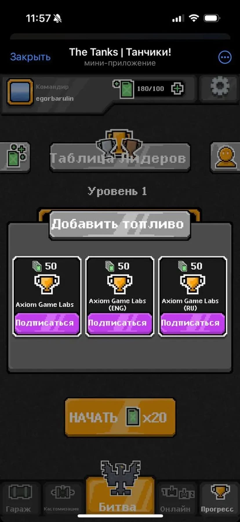 *Нажимая "Открыть в Telegram", вы перейдете к приложению The Tanks | Танчики! в мессенджере Telegram