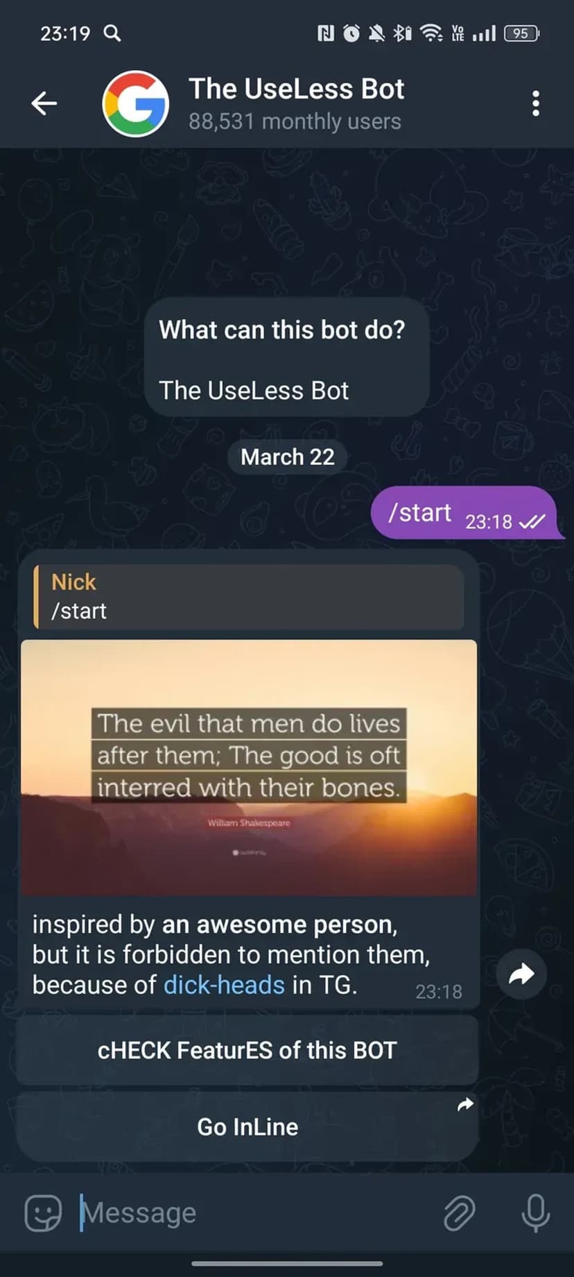 *Нажимая "Открыть в Telegram", вы перейдете к приложению The UseLess Bot в мессенджере Telegram