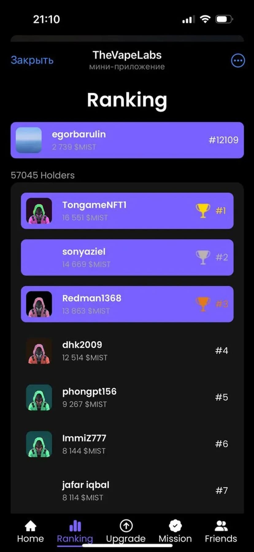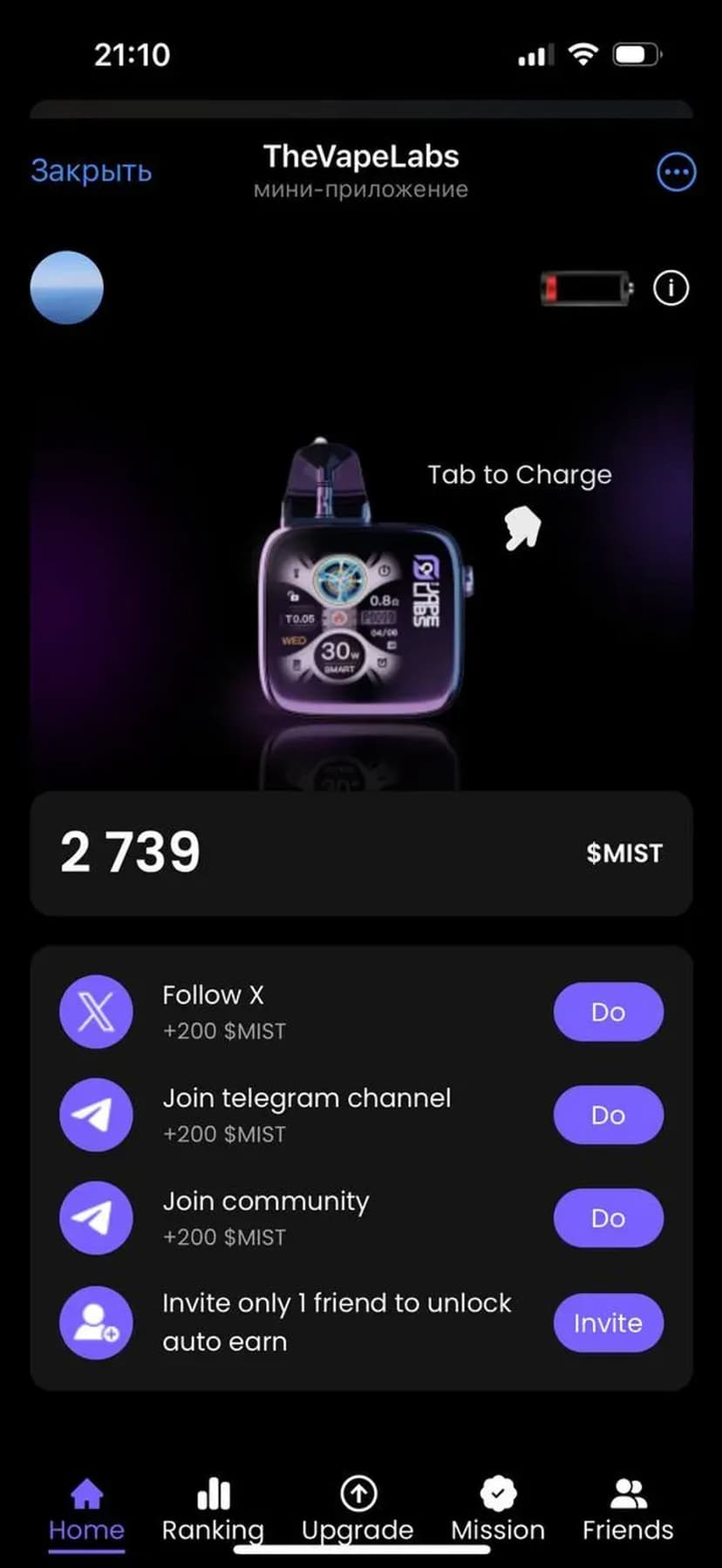 - Выполнение «миссий» и ежедневных заданий для начисления токенов $MIST.